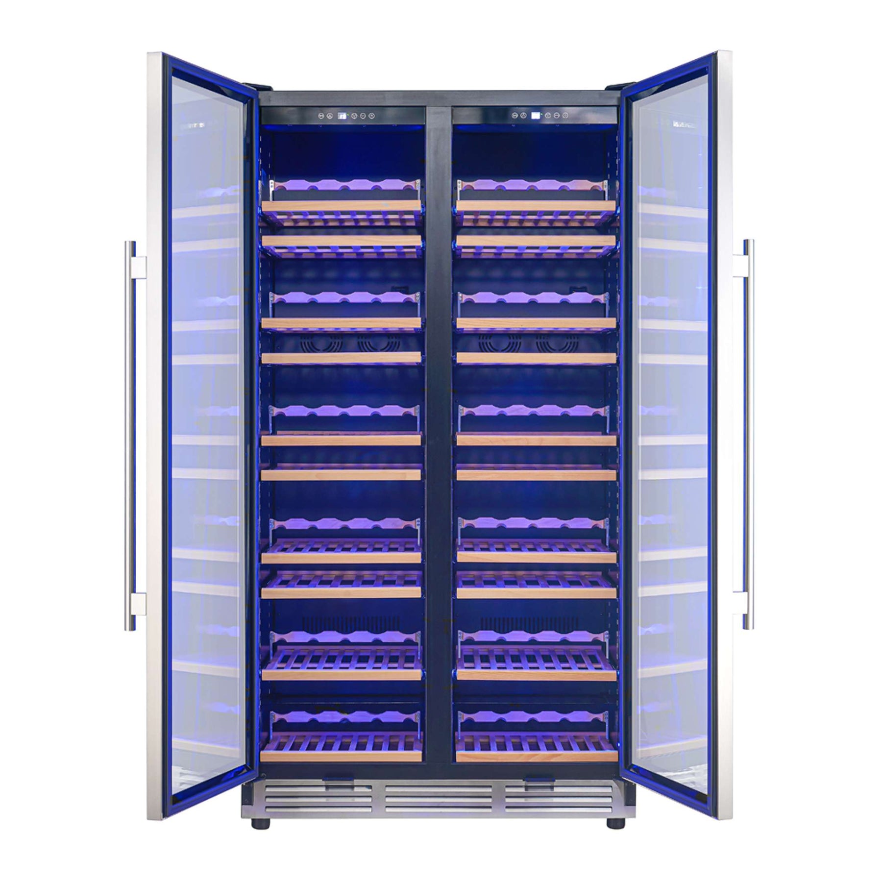 * With twenty elegant wooden shelves, this wine cooler accommodates up to 166 wine bottles, providing ample space for both your favorite vintages and new discoveries.