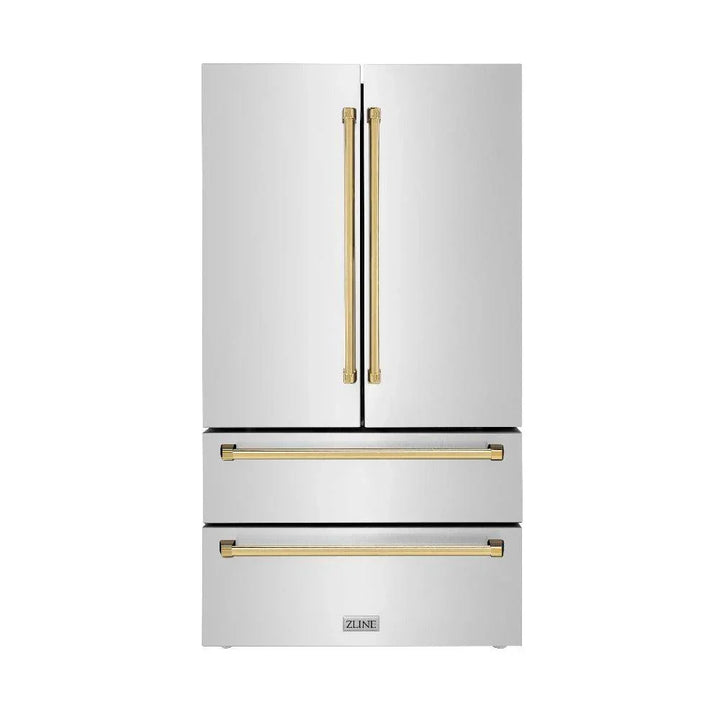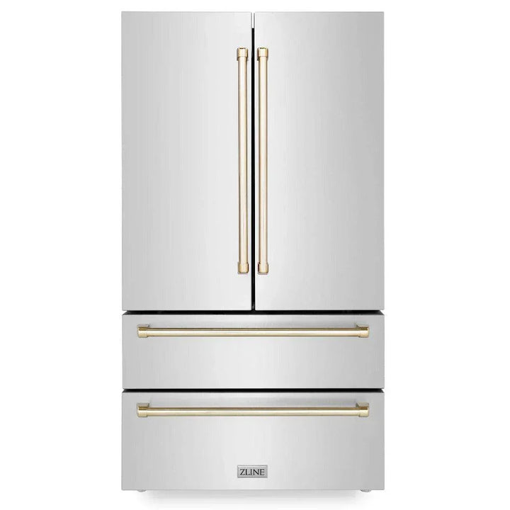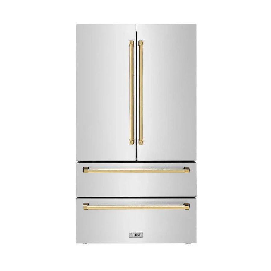 This ZLINE Autograph 36" 22.5 cu. ft Freestanding French Door Refrigerator, crafted in Lake Tahoe, USA, combines top-tier performance with classic design. This refrigerator is packed with innovative features to enhance your kitchen experience, making it the perfect blend of style and functionality.