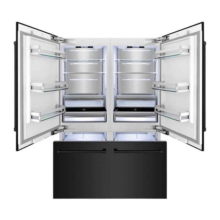 Enhance your kitchen with the ZLINE Professional 60" 32.2 cu. ft. Built-In 4-Door Bottom Freezer Refrigerator. This refrigerator combines high-quality performance with classic design, offering advanced capabilities such as adjustable temperatures, RapidChill Mode, and a concealed internal water and ice dispenser. Experience ZLINE's Attainable Luxury with this refrigerator, seamlessly blending innovation, elegance, and efficiency.