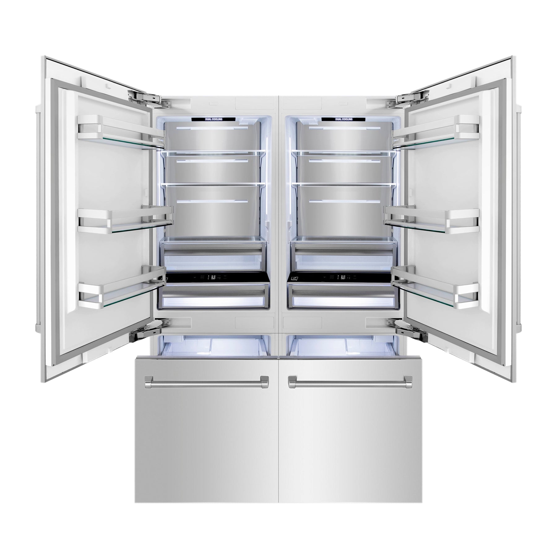 - Dual Cooling System: Separate cooling systems for the refrigerator and freezer prevent air and odors from mixing, ensuring efficient cooling.