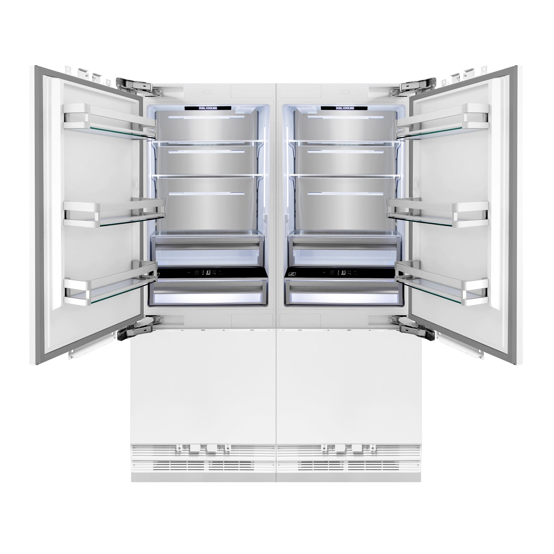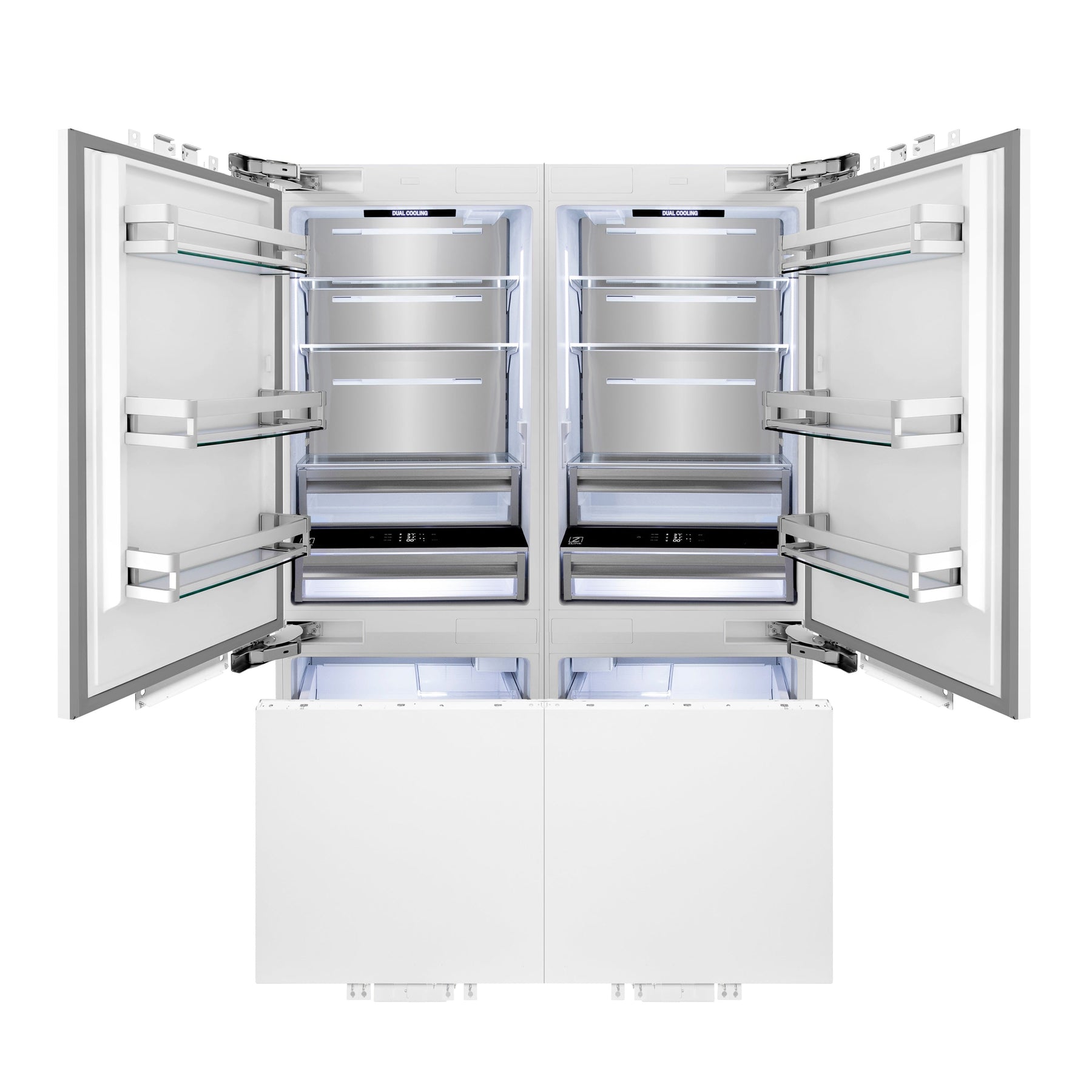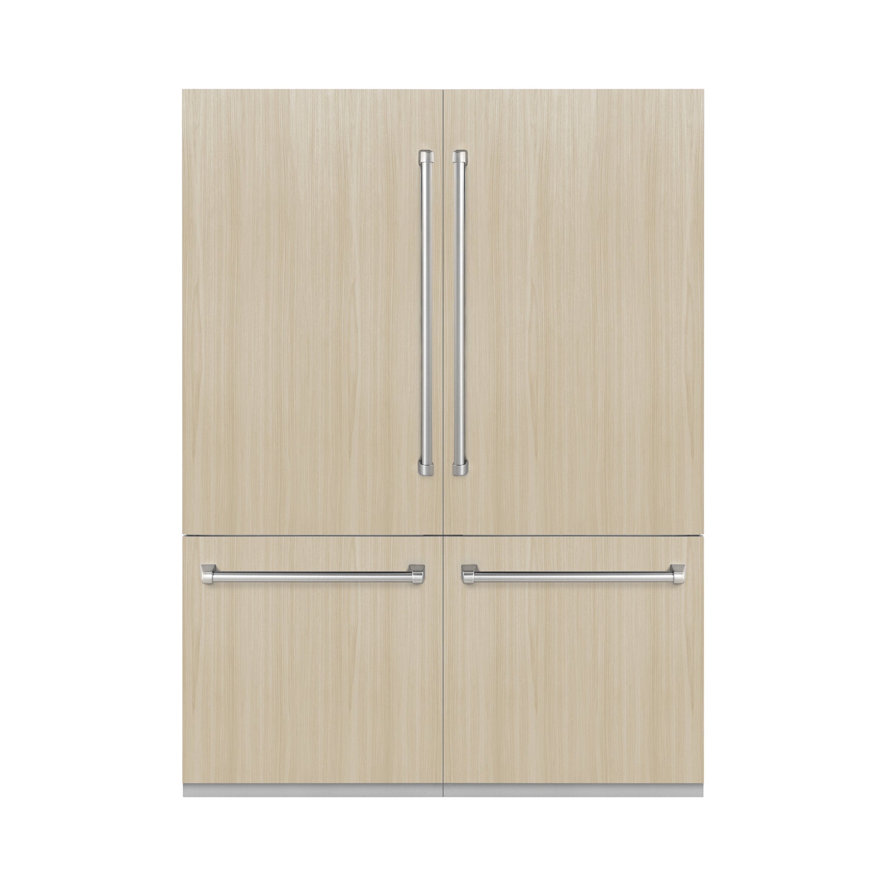 Enhance your kitchen with the ZLINE Autograph 60" 32.2 cu. ft. Built-In Panel-Ready 4-Door Bottom Freezer Refrigerator. This refrigerator combines high-quality performance with classic design, offering advanced capabilities such as adjustable temperatures, RapidChill Mode, and a concealed internal water and ice dispenser. Experience ZLINE's Attainable Luxury with this refrigerator, seamlessly blending innovation, elegance, and efficiency.