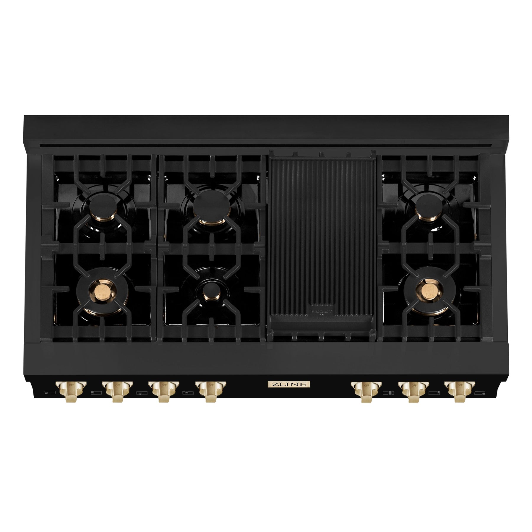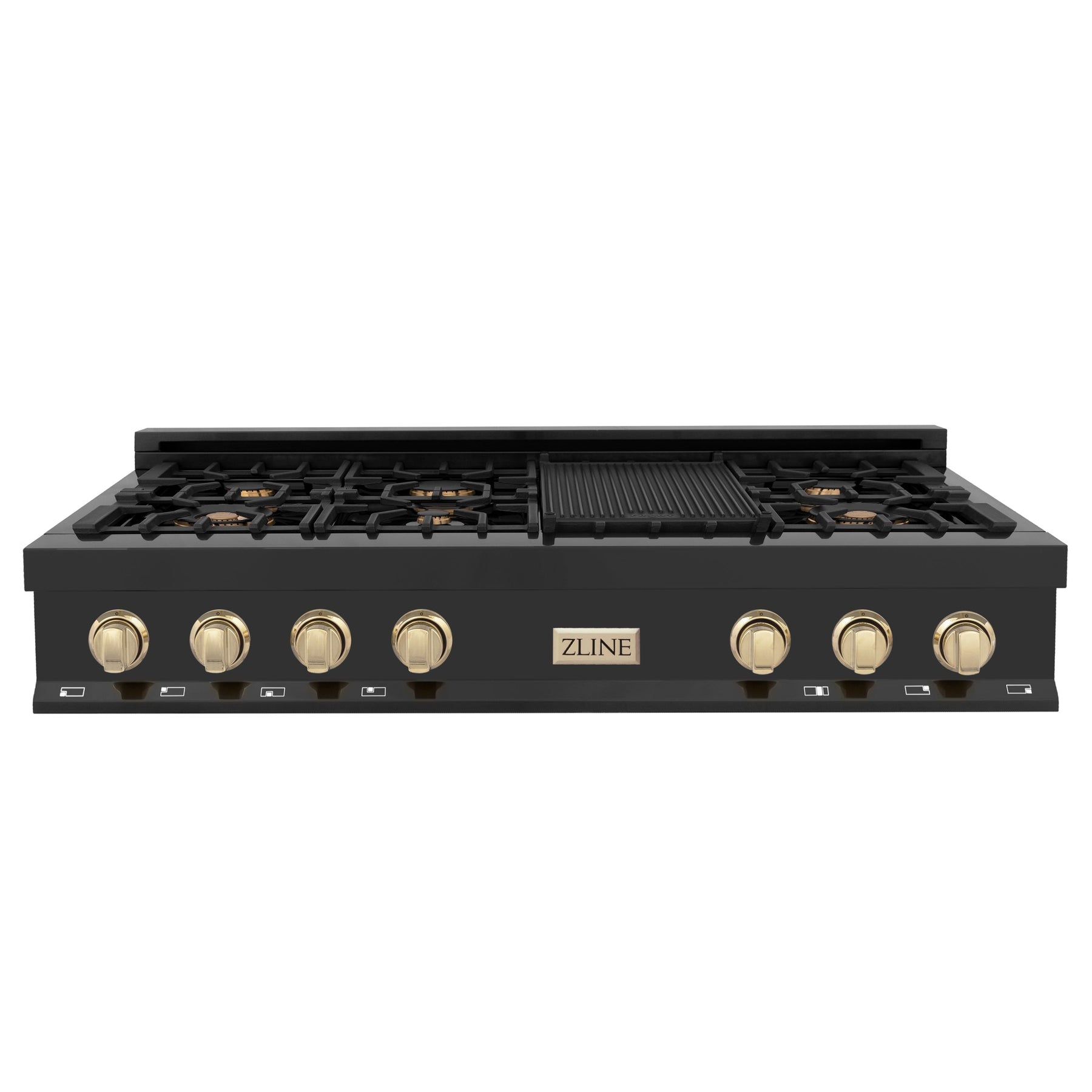 Luxury isn’t meant to be desired - it’s meant to be attainable. Designed in Lake Tahoe, USA, the ZLINE Autograph Edition 48" Porcelain Rangetop with 7 Gas Burners in Black Stainless Steel and Gold Accents (RTBZ-48-G) provides a professional culinary experience by pairing unmatched performance with personalized touches. Encompassing limitless beauty, precision, and quality, the Autograph Edition Series creates a luxury look that will transform your space. Achieve ZLINE Attainable Luxury® excellence with innovative features designed to enhance your kitchen’s capability.