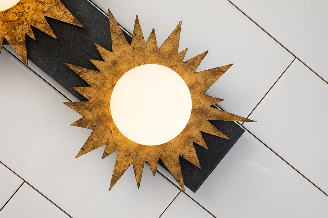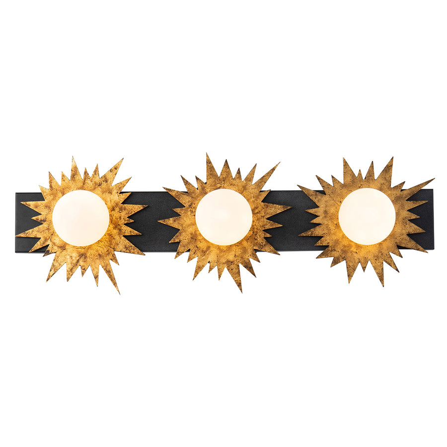Looking to lighten up your space with a whimsical and art-inspired piece? Designed using a statement-making sun shape , this three-light vanity light is the favorite pick for installing in pairs over your favorite mirrors. Creating an eye-catching focal point, this 3- light star shaped bath lantern is unique enough to work in the most sophisticated spaces, and using the mixed metal finishes, will give texture, depth, and add a little more drama to your bathroom space.. Measuring 24" in length, 8.5" in height and 4.5" in depth, the Soleil bathroom light can easily fit in that updated bathroom.