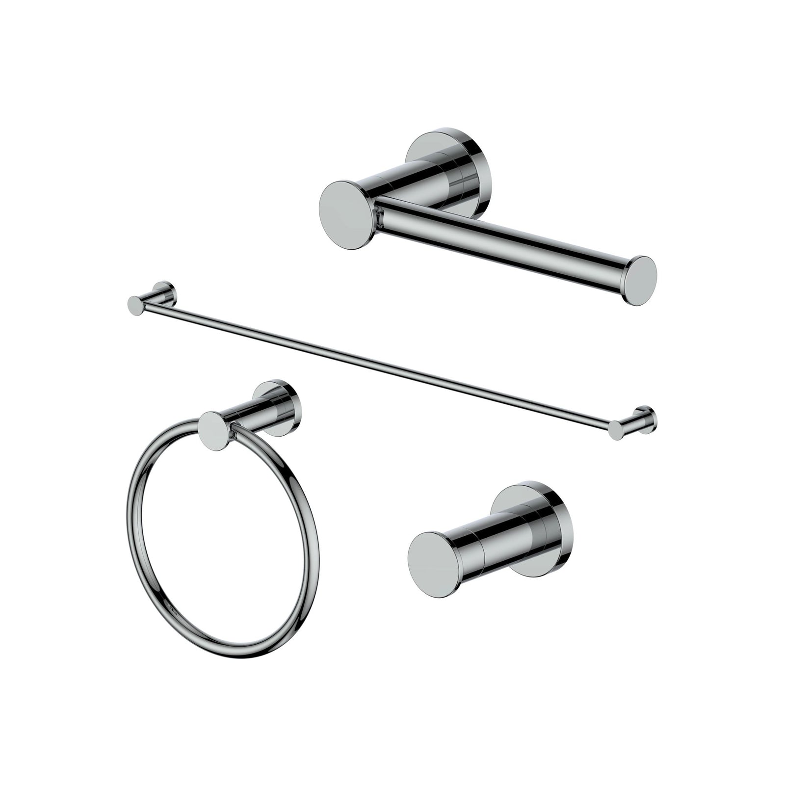 ZLINE Emerald Bay Bathroom Accessories Package with Towel Rail, Hook, Ring and Toilet Paper Holder in Chrome (4BP-EMBYACC-CH)