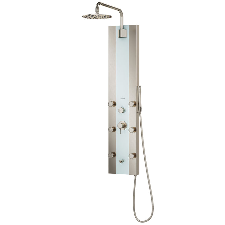 The PULSE Tropicana ShowerSpa is beautiful! Elegant Brushed Nickel fixtures complement the seafoam tempered glass panel and brushed stainless steel body. The Tropicana features all brass fixtures including six single-function Silk-Spray™ jets, powerful handshower wand, tub spout, and large rain showerhead with unique side to side pivoting shower arm. The PULSE Tropicana ShowerSpa instantly brings spa quality and features to your home!