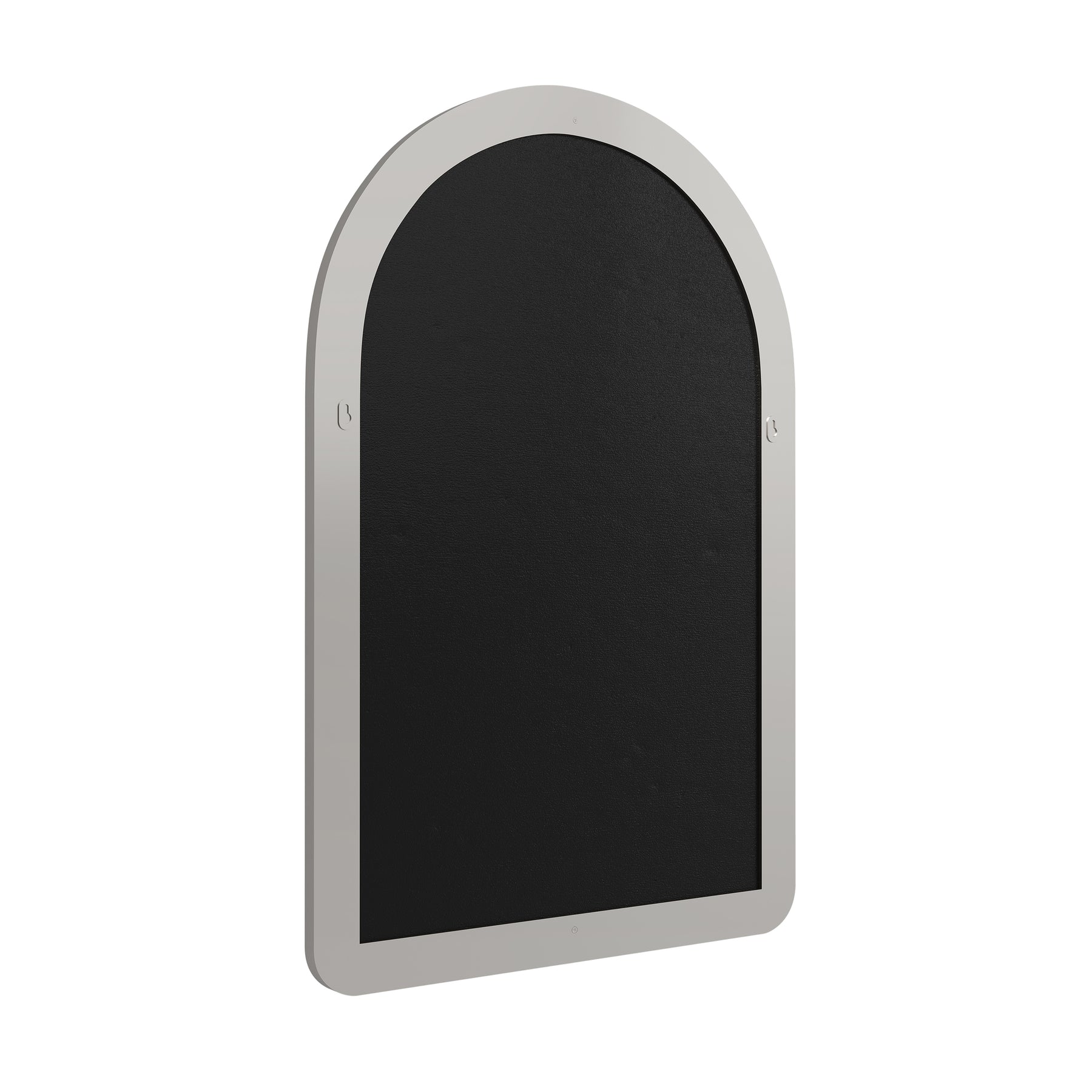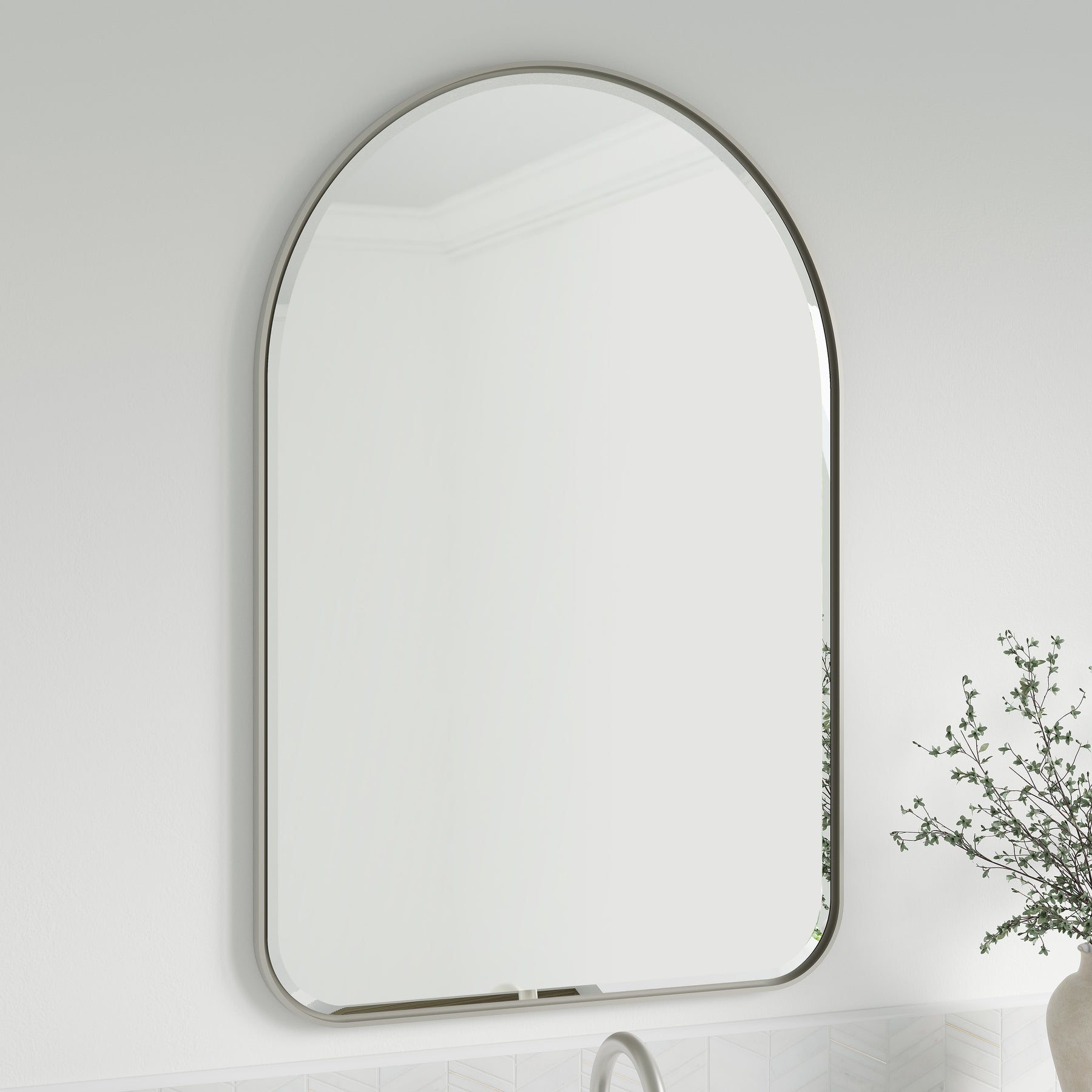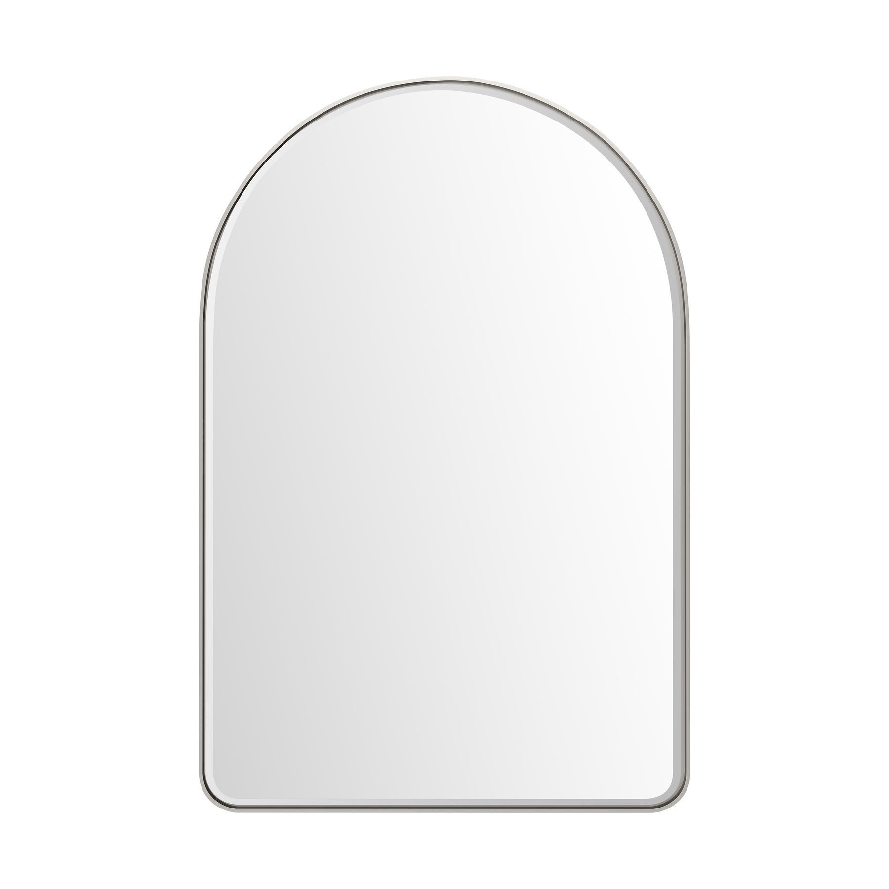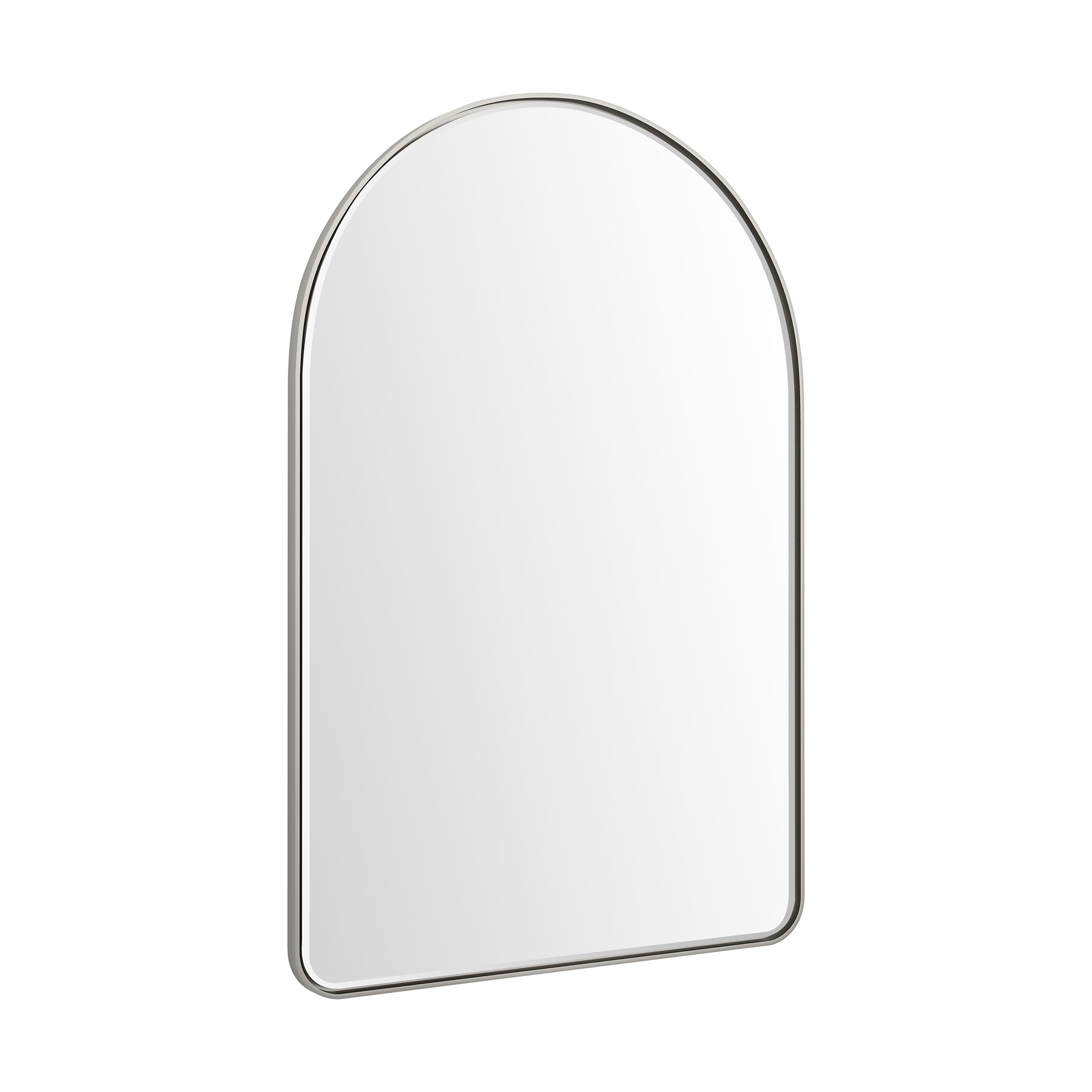 Inspired by modern framed canvas art, the Rohe 24" Arched Mirror appears to float inside the classic Satin Nickel metal frame, adding visual interest to the beautifully bevel-cut glass. Designed to be hung vertically, this mirror comes with mounting hardware for your convenience. The Rohe's simple, yet elegant design and sophisticated finish make it the perfect accent for your bathroom and any other living spaces in your home.