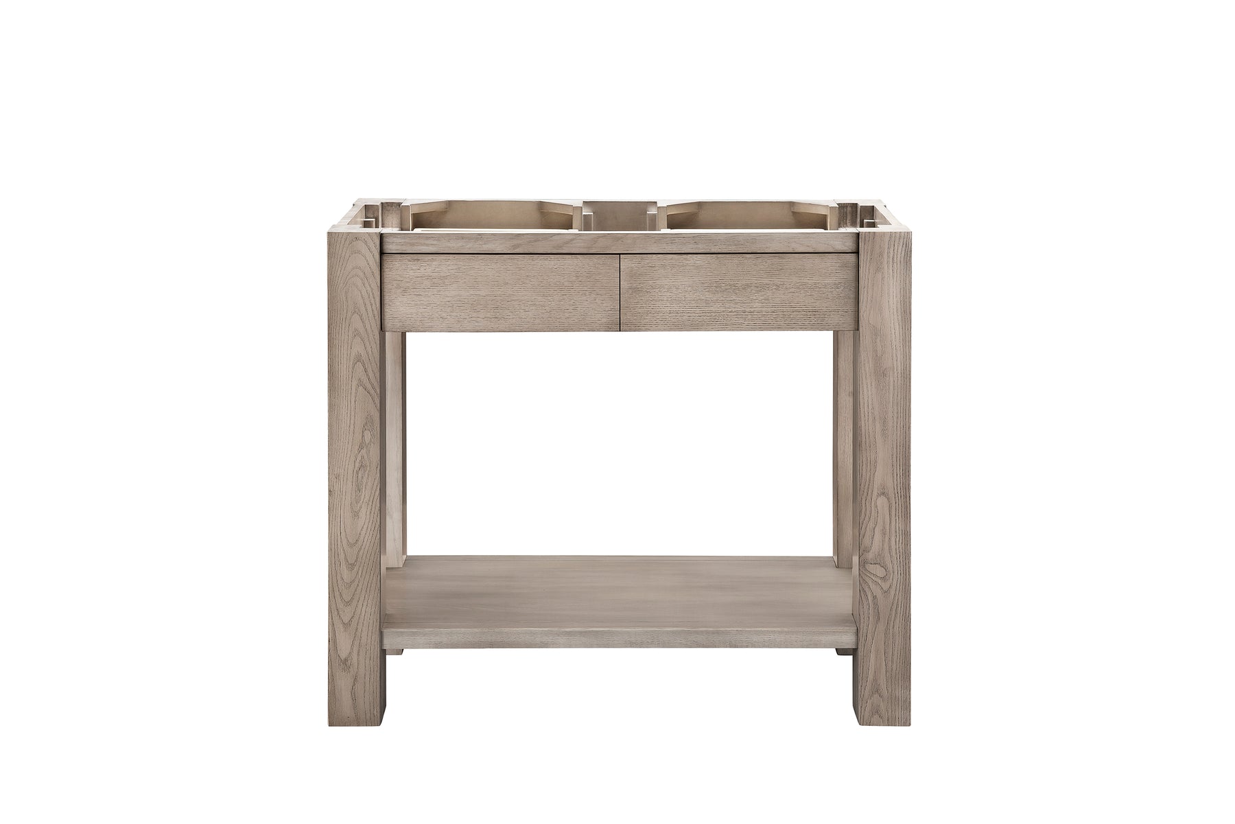 The Brooklyn 39.5” Platinum Ash Single Console by James Martin Vanities will contribute a robust and appealing display in any bathroom. Featuring a minimalistic style this sturdy wood vanity is where rustic and modern intersect. This Platinum Ash Vanity Cabinet is the perfect addition to any home. The plank shelf underneath can be used to store towels or any other bathroom essential you may have.