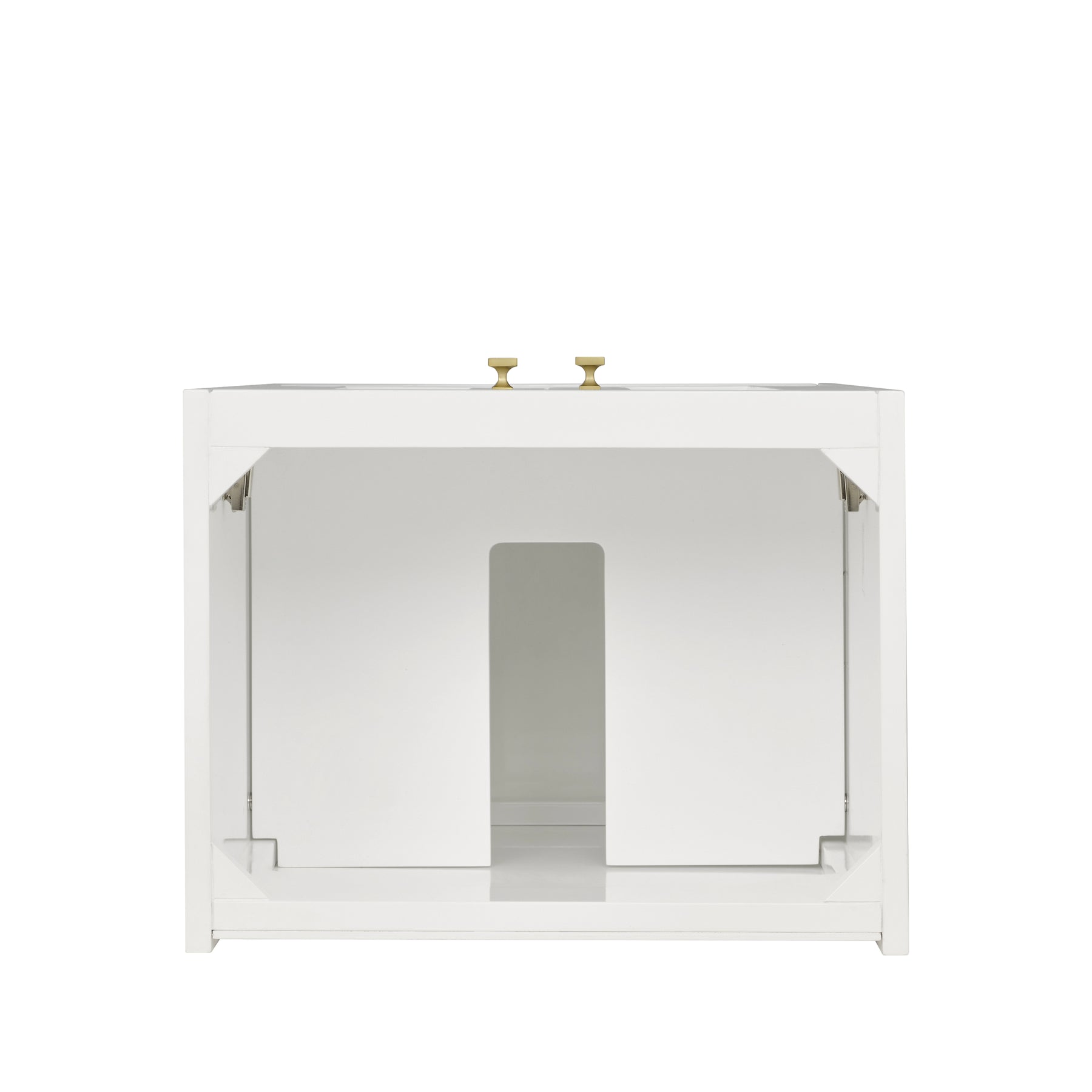 Upgrade your bathroom with the modern simplicity of the Chianti 20" Single Vanity by James Martin Vanities. Crafted from solid hardwoods with a sleek Glossy White finish, this compact vanity combines style with functionality.