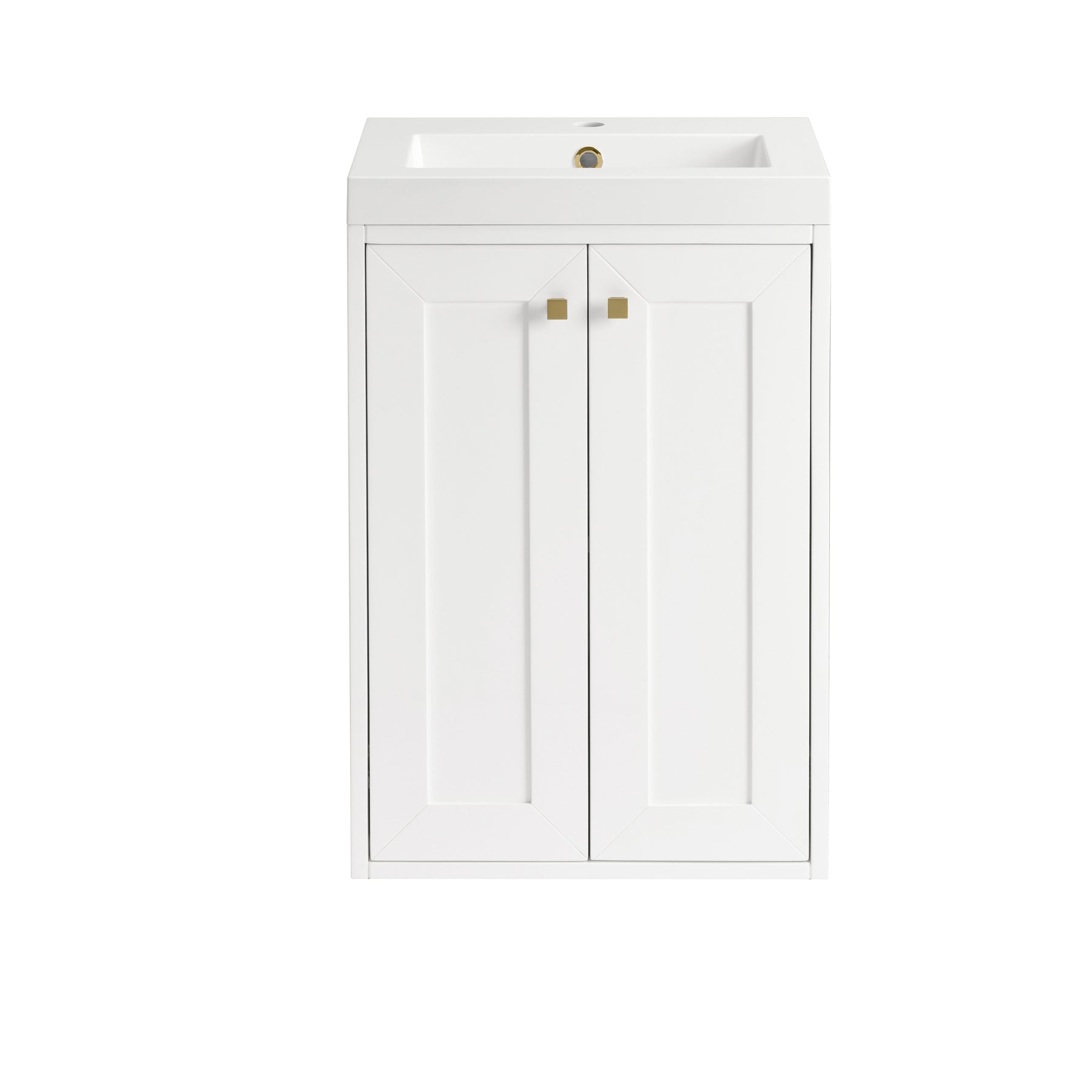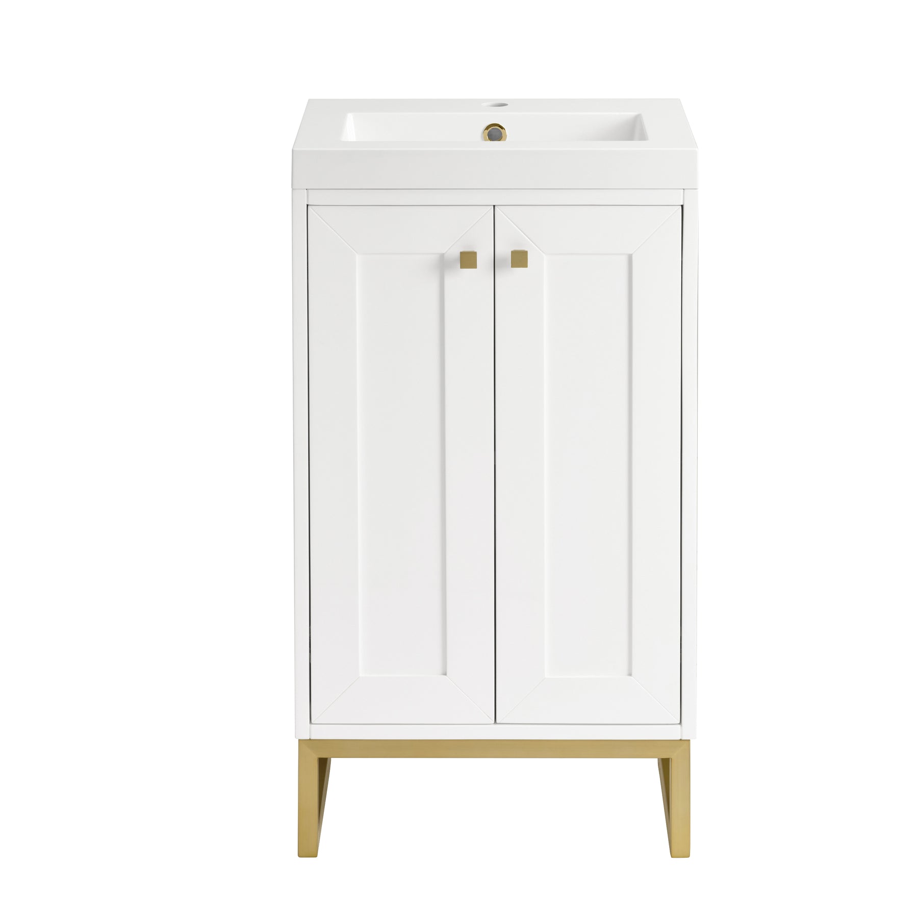 Upgrade your bathroom with the modern simplicity of the Chianti 20" Single Vanity by James Martin Vanities. Crafted from solid hardwoods with a sleek Glossy White finish and topped with a White Glossy Composite Stone countertop, this compact vanity combines style with functionality.