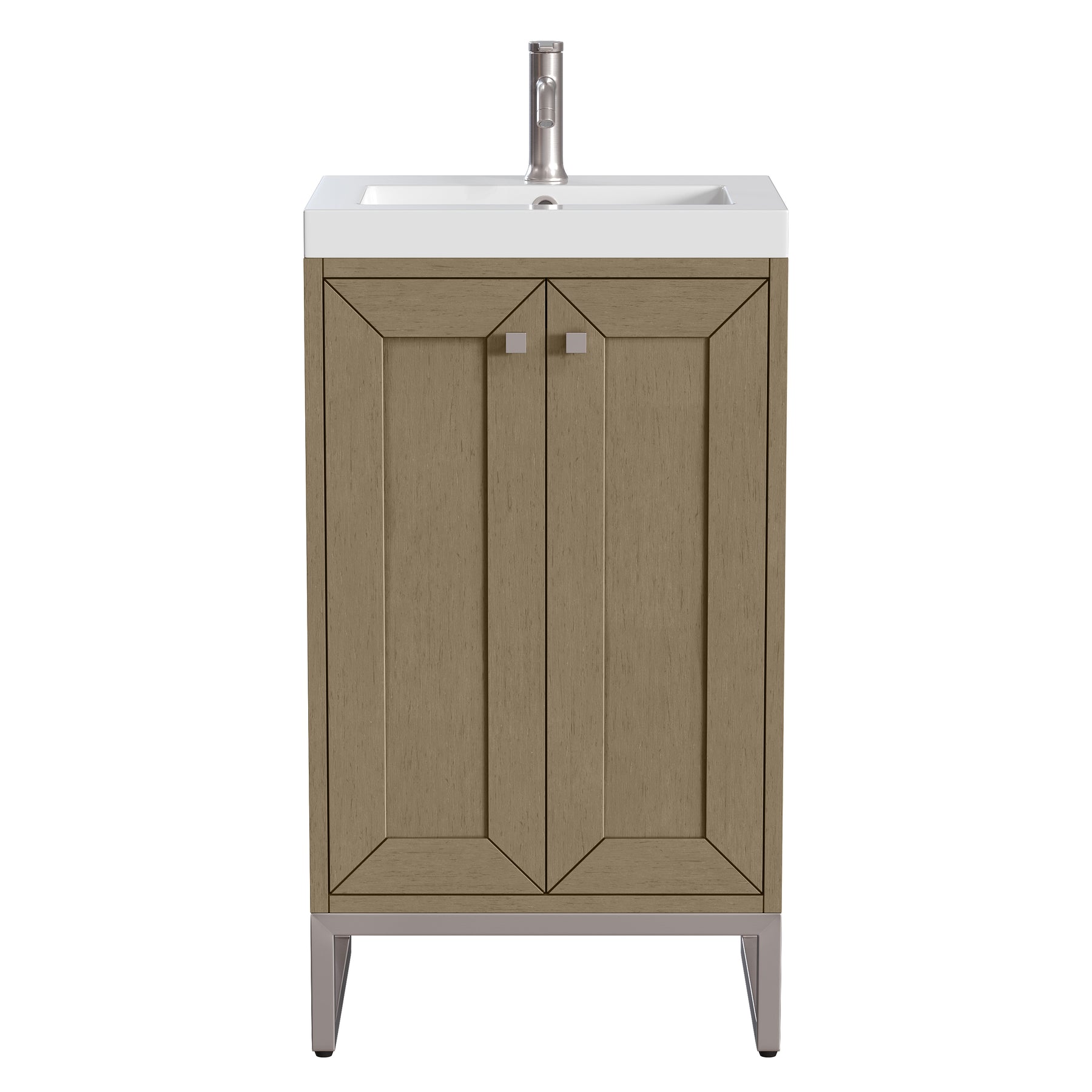 Upgrade your bathroom with the modern simplicity of the Chianti 20" Single Vanity by James Martin Vanities. Crafted from solid hardwoods with a classic Walnut Whisper finish and topped with a White Glossy Composite Stone countertop, this compact vanity combines style with functionality.