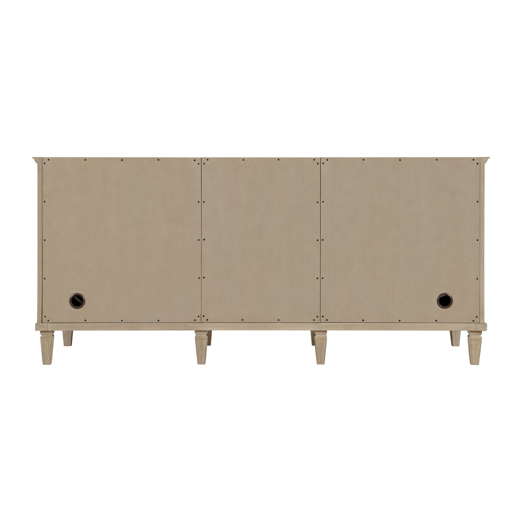 The 72” Lorelai Double Vanity celebrates timeless form and exquisite finish details, combined with practical function. The Whitewashed Oak finish is accented by reeded details, and clean, raised picture frame molding. Coin-edge knobs in Satin Nickel provide the perfect accent. This four-door cabinet opens to spacious interior with shelves and convenient USB/Electric power outlets. Three traditional drawers and two tip-outs offer additional storage space. The addition of a Ethereal Noctis Silestone top by Cosentino with undermount rectangular sink completes this timeless bathroom centerpiece with its modern, intricate black and gray nuances which add contrast and elegance to the white background.