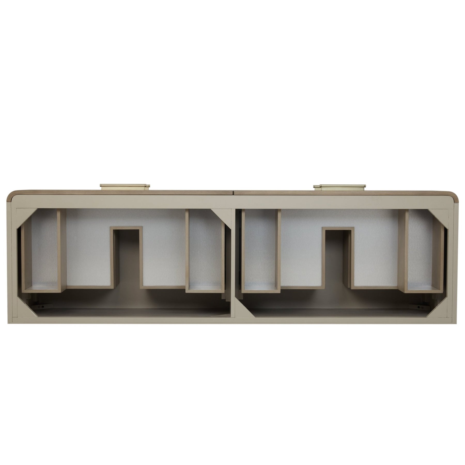 The Lucian 72” Double Vanity by James Martin Vanities is a visual delight, boasting a rich Pebble Oak finish that adds warmth and character to your space. Complemented by Champagne Brass hardware, the ribbed detailing is meticulously crafted. Enjoy ample storage, four deep drawers, and a lower console-style shelf for added versatility. With the addition of an elegant Victorian Silver Silestone® top and undermount porcelain sinks, this vanity is a seamless integration of modern design and functionality.