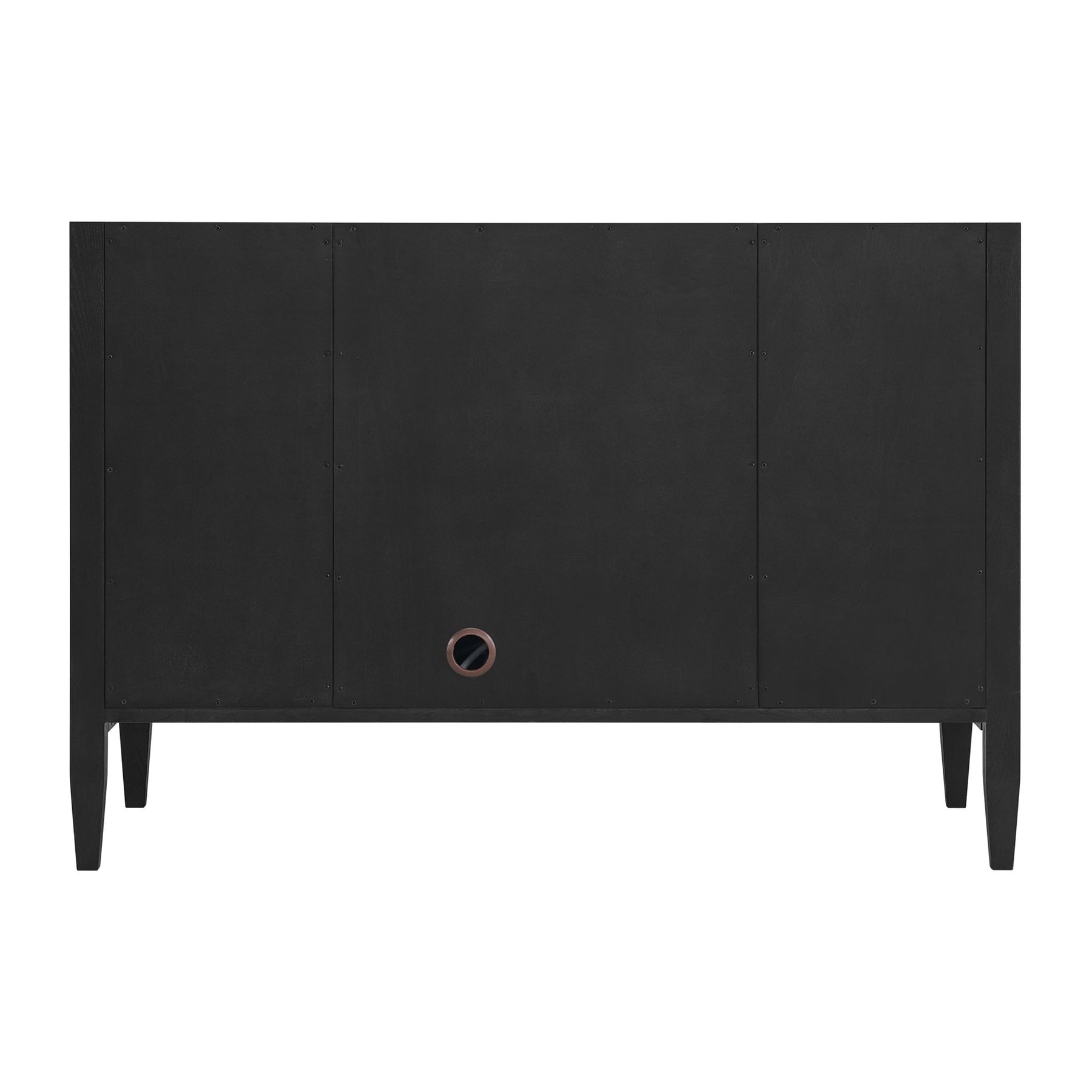 Featuring fluted detailing and a sleek silhouette, the Myrrin 48” Single Vanity brings Mid-Century charm and modern utility to your bathroom. Finished in a rich Carbon Oak and complemented by Champagne Brass T-shaped knobs, Myrrin offers generous storage. The single-door cabinet opens to a spacious interior with a single shelf and a convenient USB/120V power unit. Six full-extension drawers (two double-deep) lend additional storage. Completed with a modern Ethereal Noctis Silestone® top with undermount sink, this vanity is a seamless integration of modern design and functionality.