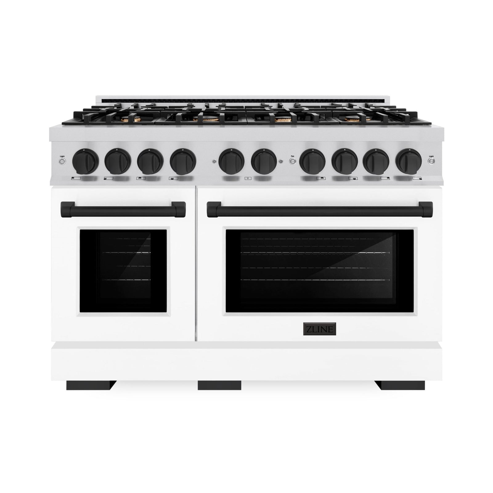 ZLINE Autograph Edition 48 in. 6.7 cu. ft. Select Double Oven Dual Fuel Range with 8 Burner Gas Cooktop in Stainless Steel with White Matte Door and Matte Black Accents (HDRZ-WM-48-MB)