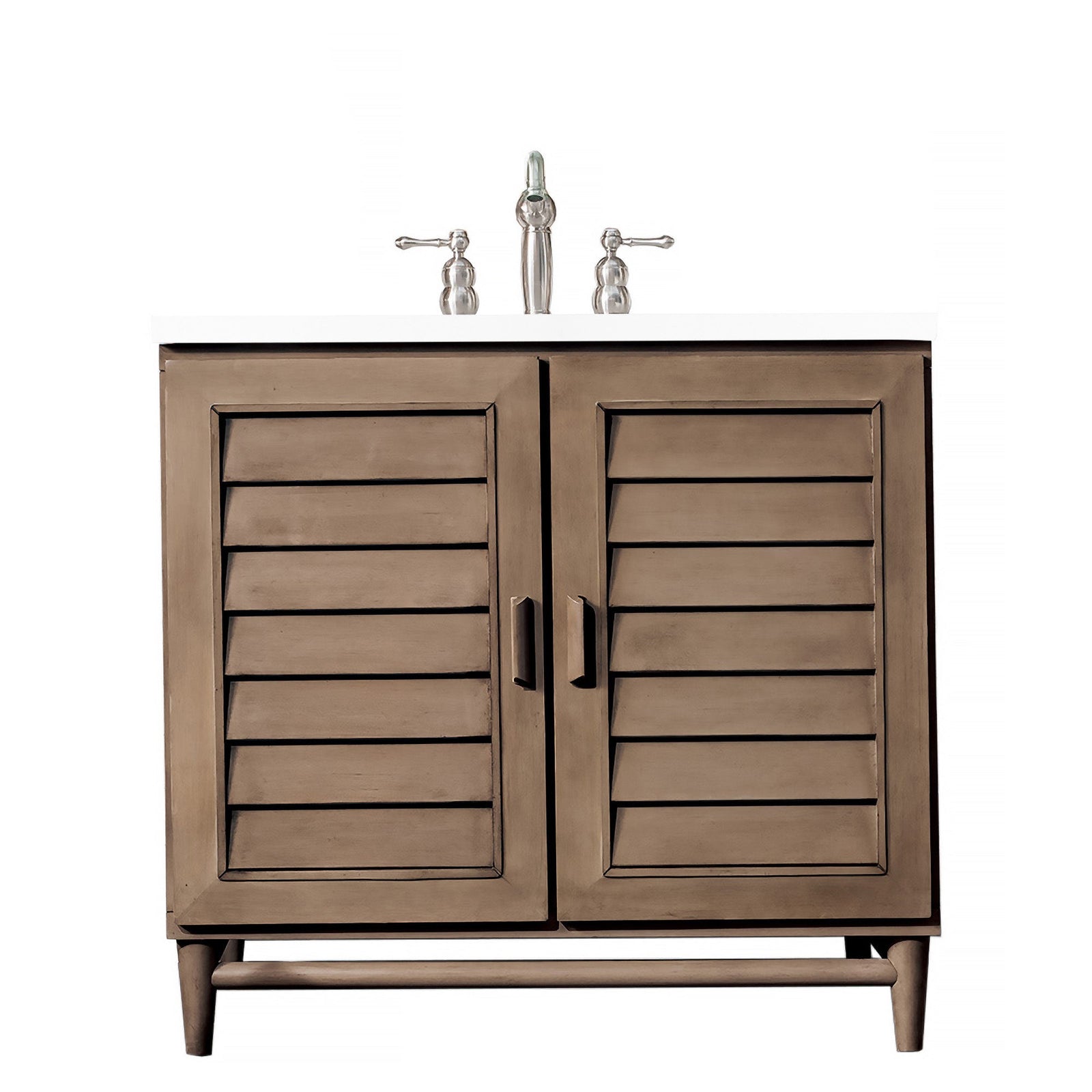 Portland 36" Single Vanity Whitewashed Walnut w/ 3 CM Eternal Jasmine Pearl Silestone Top