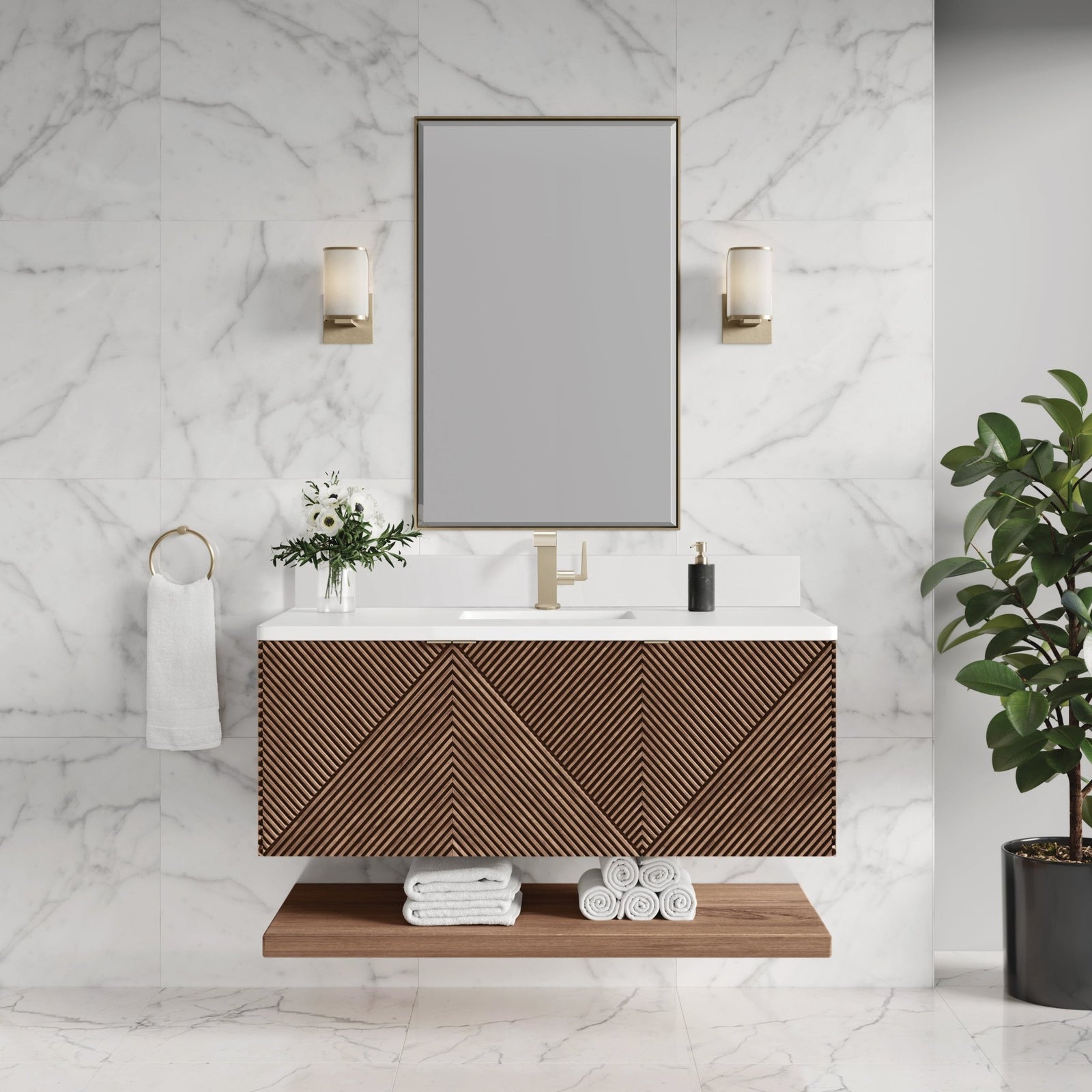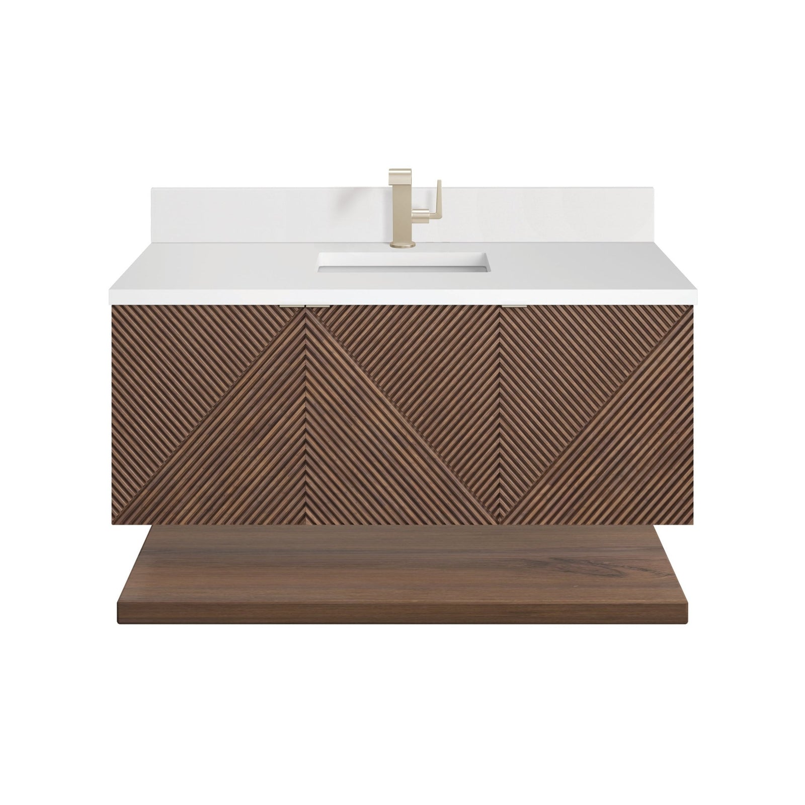 Marcello 48" Single Vanity, Chestnut w/ Single Hole 3 CM White Zeus Silestone Top & Backsplash
