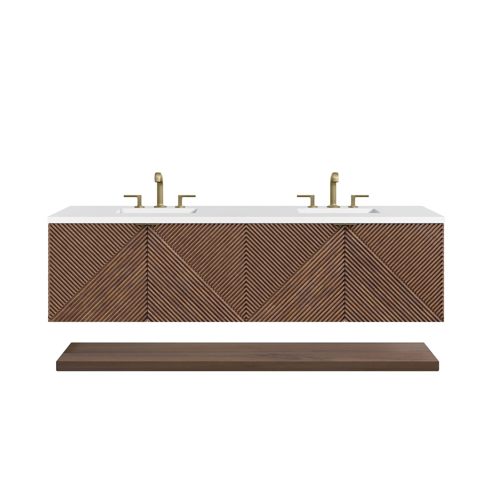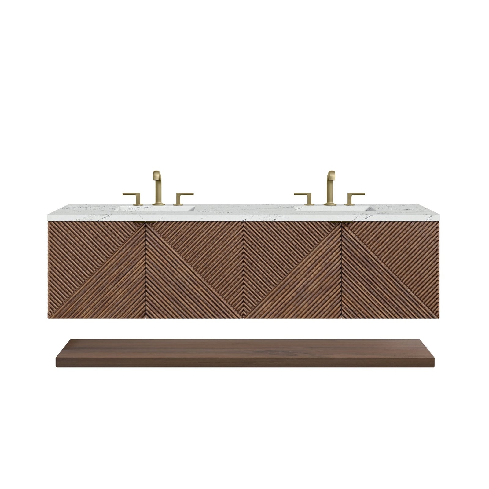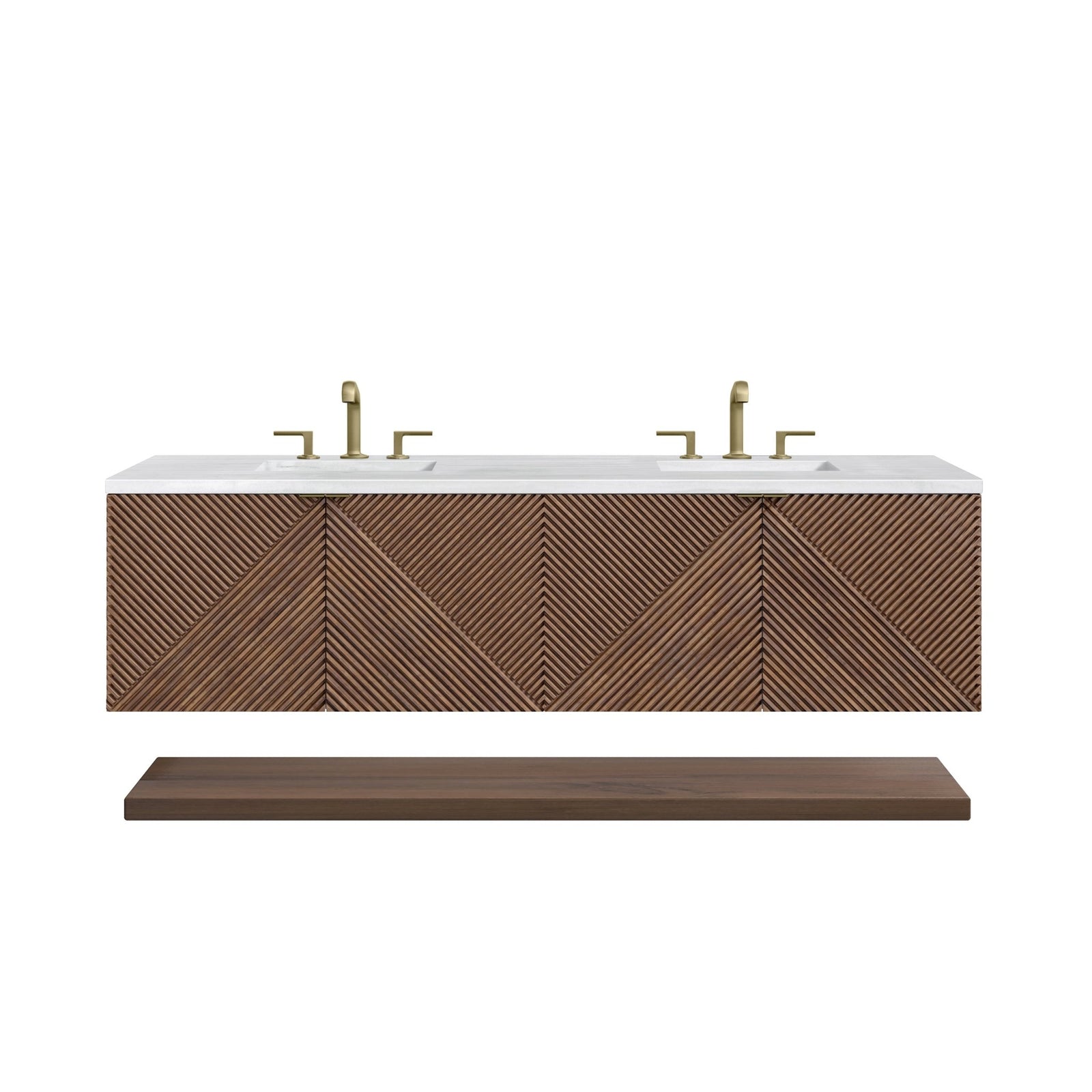 Marcello 72" Double Vanity, Chestnut w/ Single Hole 3 CM White Zeus Top & Backsplash