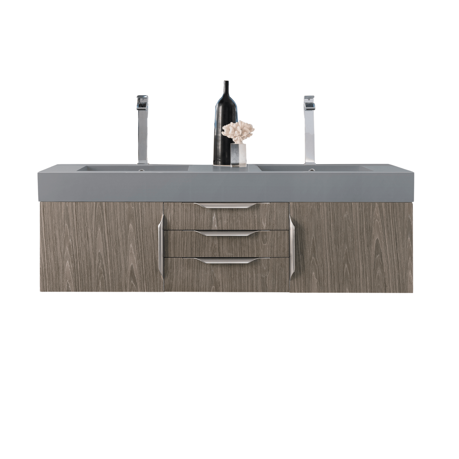Mercer Island 59" Double Vanity, Ash Gray w/ Dusk Grey Glossy Composite Stone Top