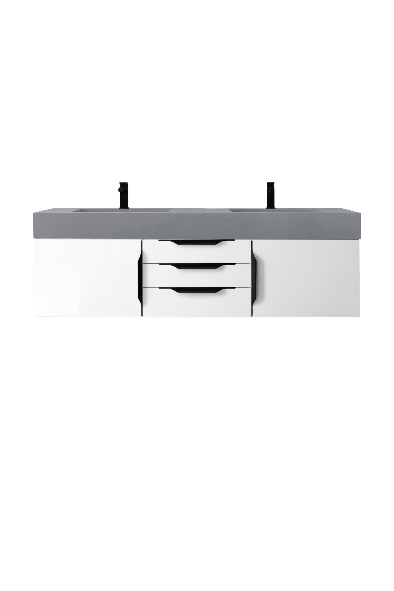Mercer Island 59" Double Vanity, Glossy White, Matte Black w/ Dusk Grey Glossy Composite Stone Top