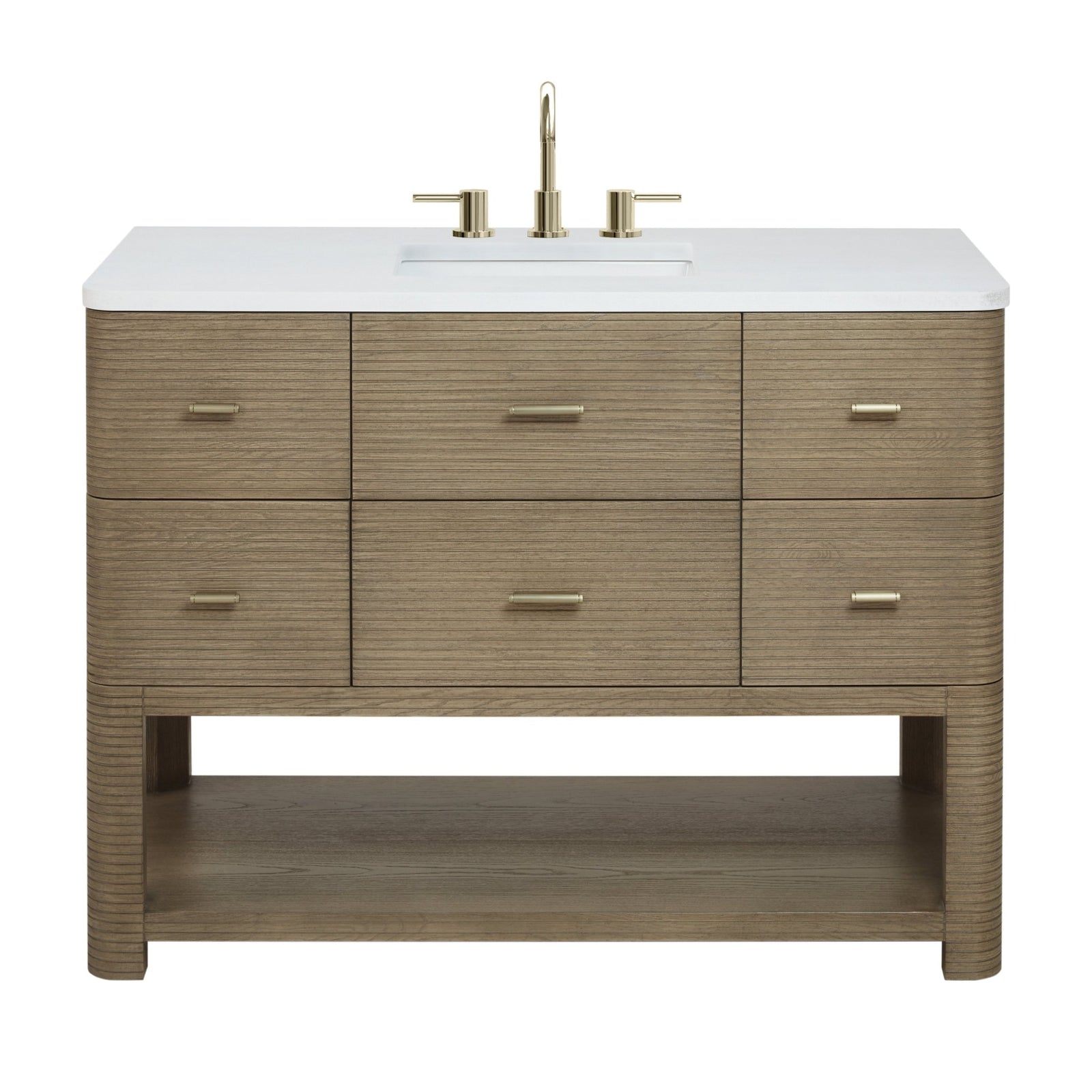 Lucian 48" Single Vanity, Pebble Oak w/ 3 CM White Zeus Silestone Top