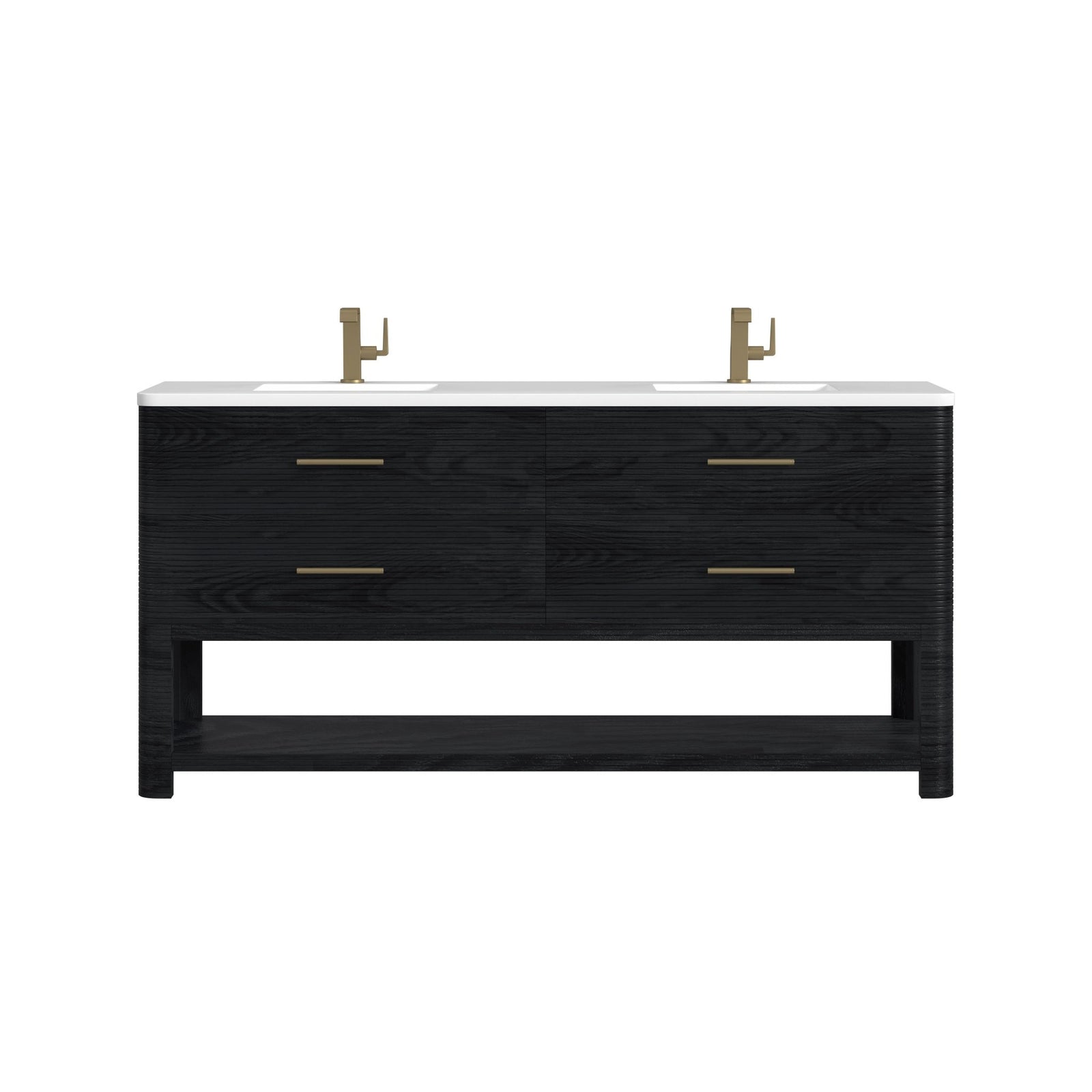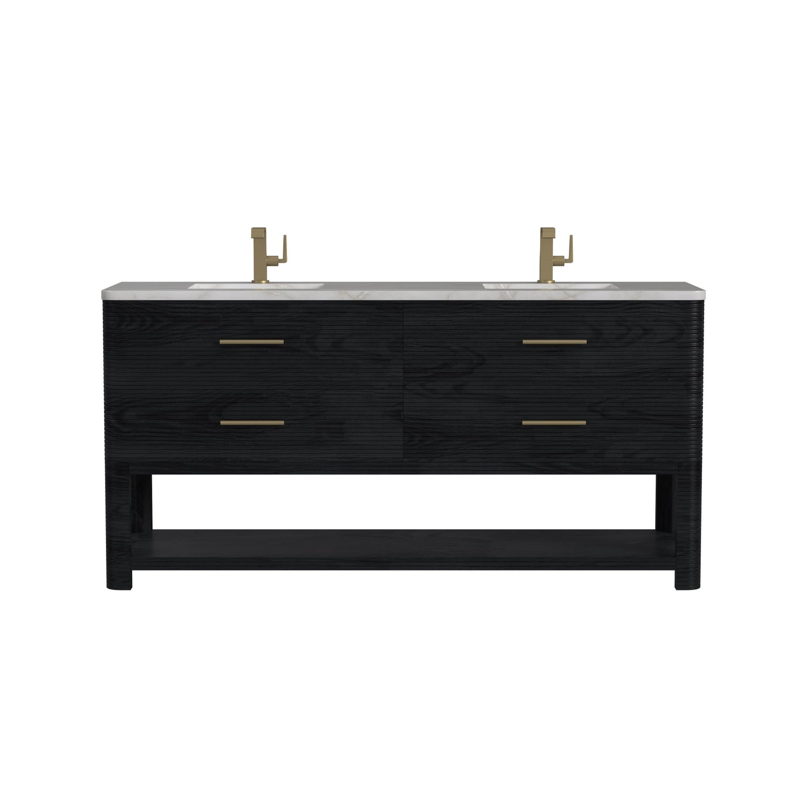 Lucian 72" Double Vanity, Carbon Oak w/ 3 CM White Zeus Silestone Top