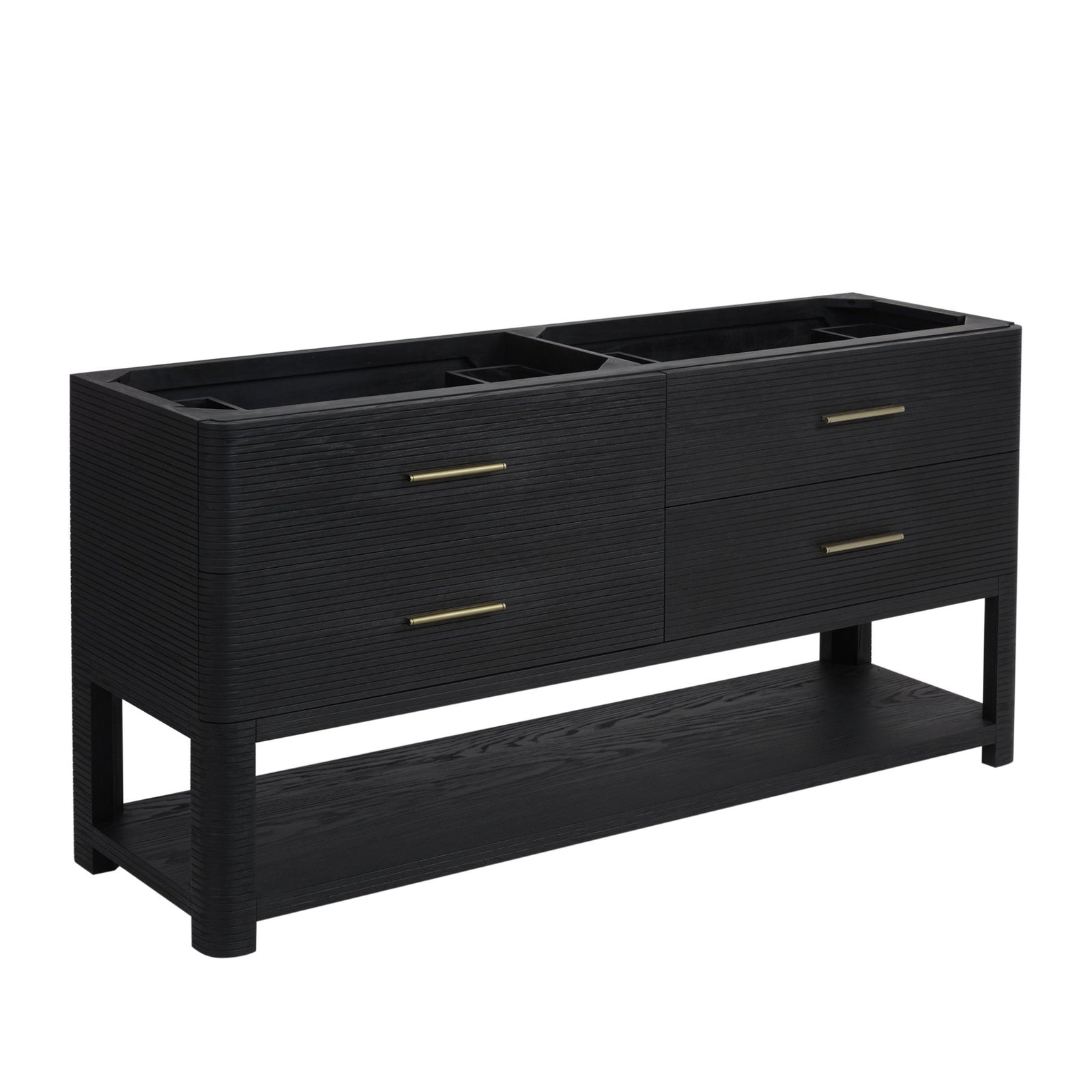 Lucian 72" Double Vanity, Carbon Oak w/ 3 CM Victorian Silver Silestone Top