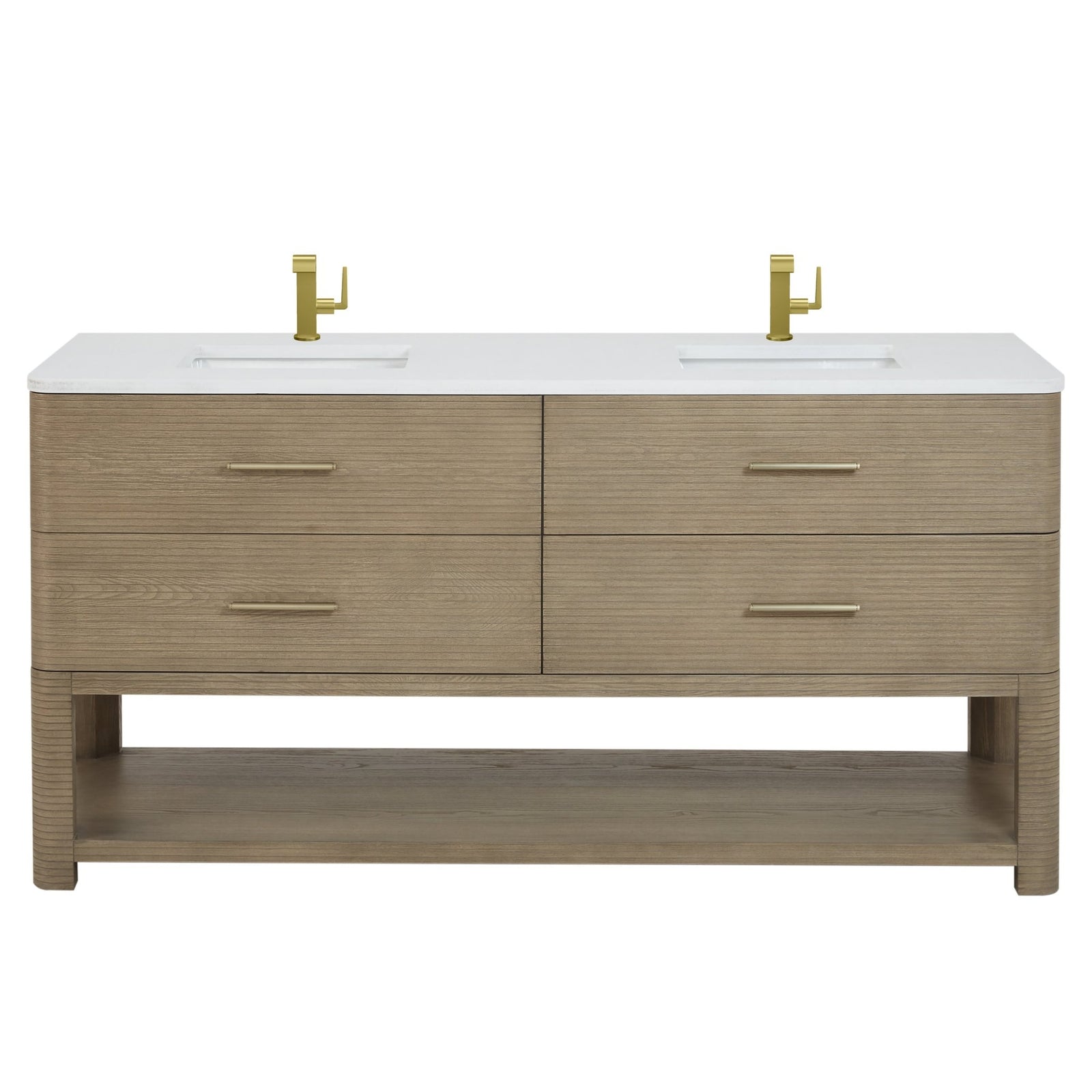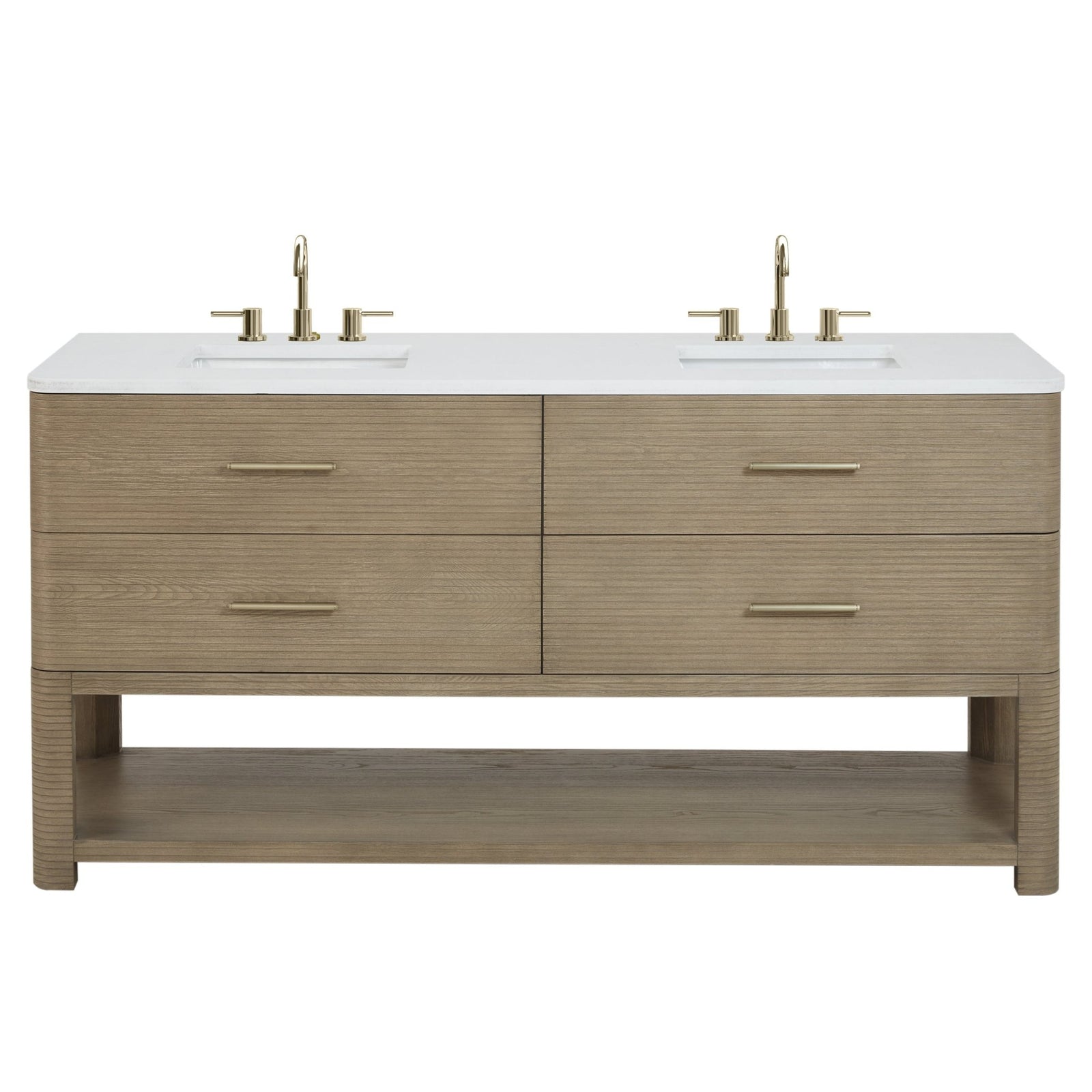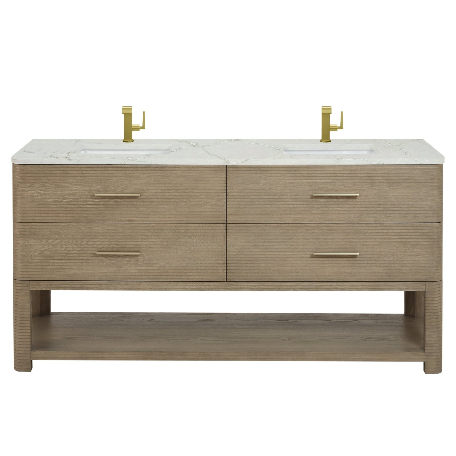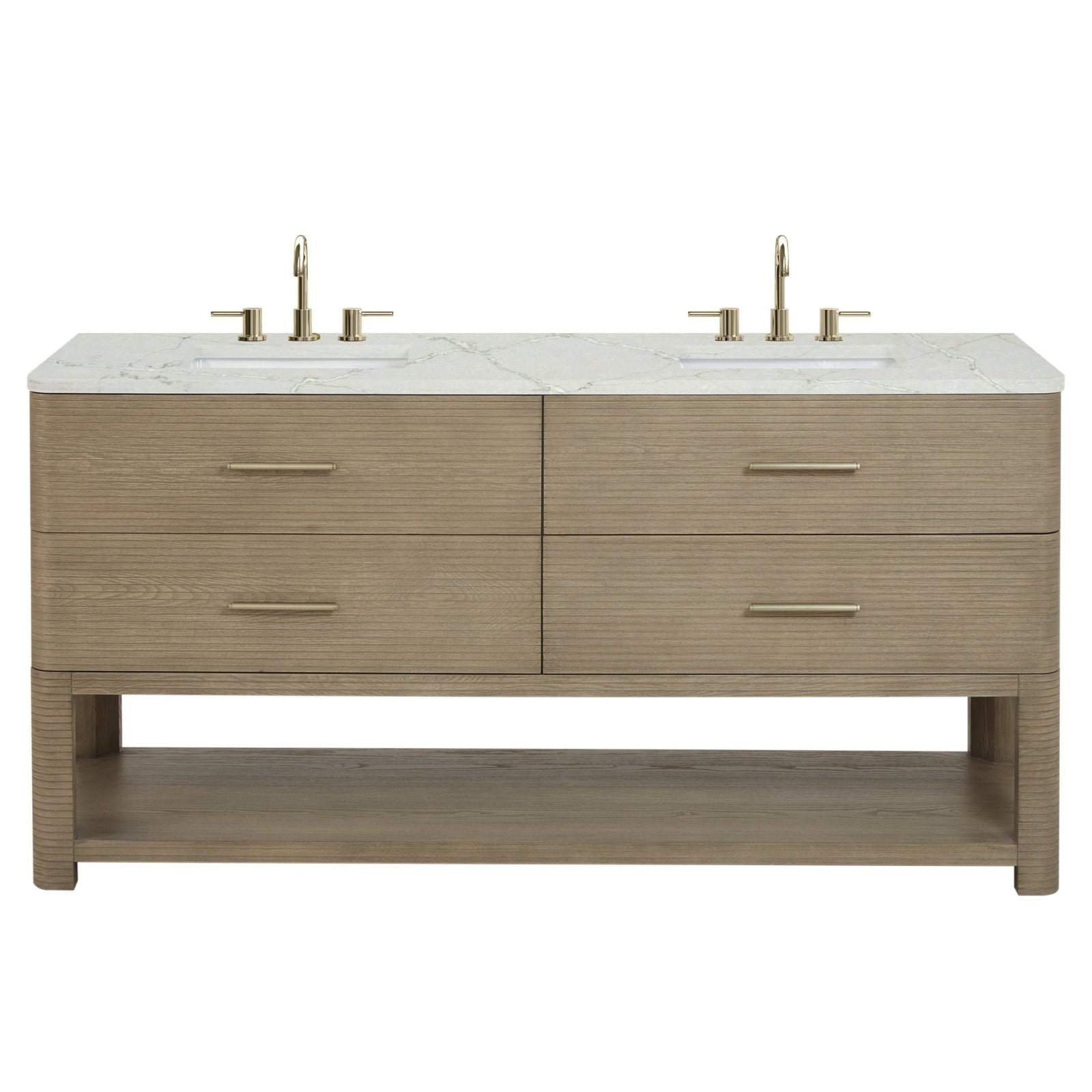 Lucian 72" Double Vanity, Pebble Oak w/ 3 CM White Zeus Silestone Top