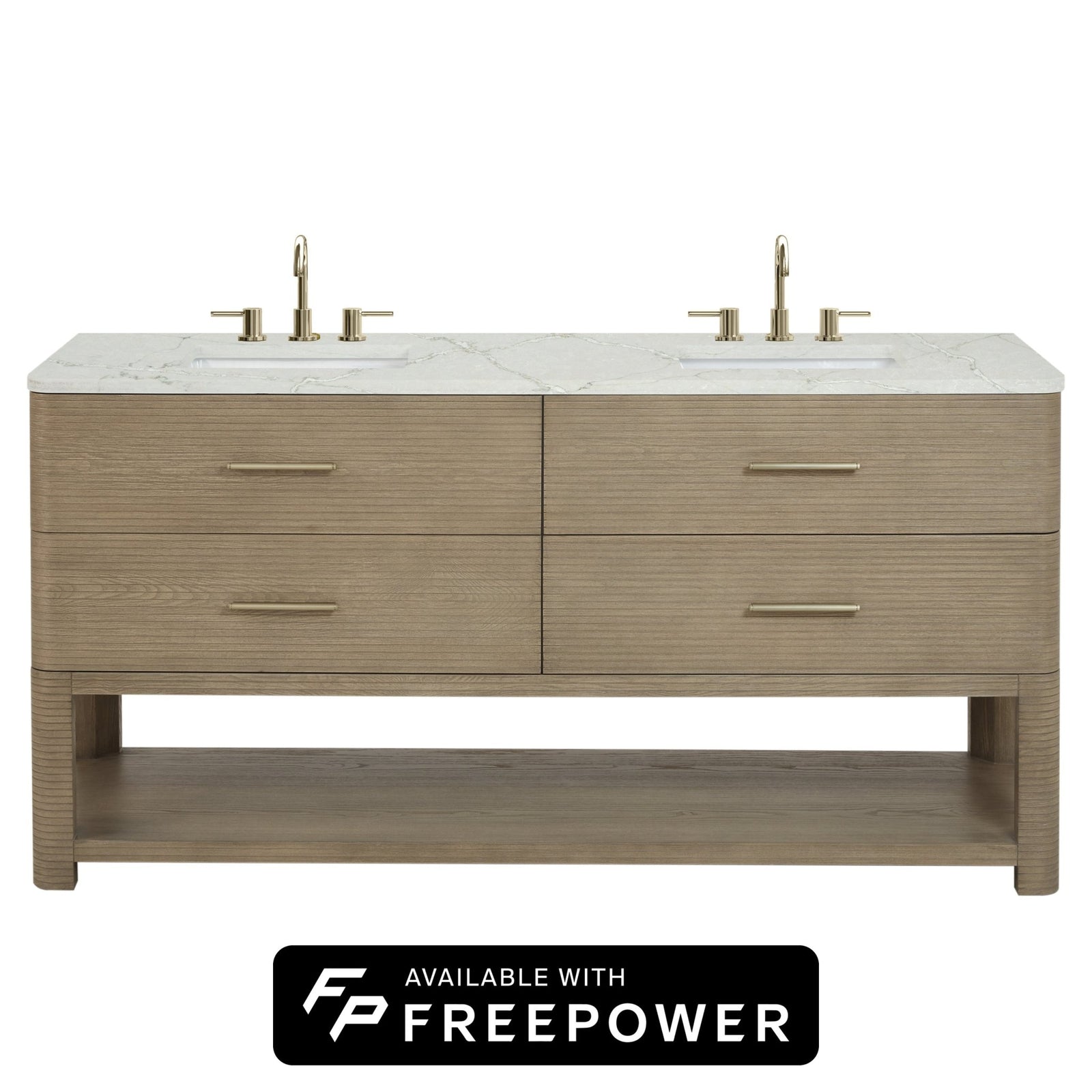 Lucian 72" Double Vanity, Pebble Oak w/ 3 CM Victorian Silver Silestone Top w/FreePower Wireless Charger