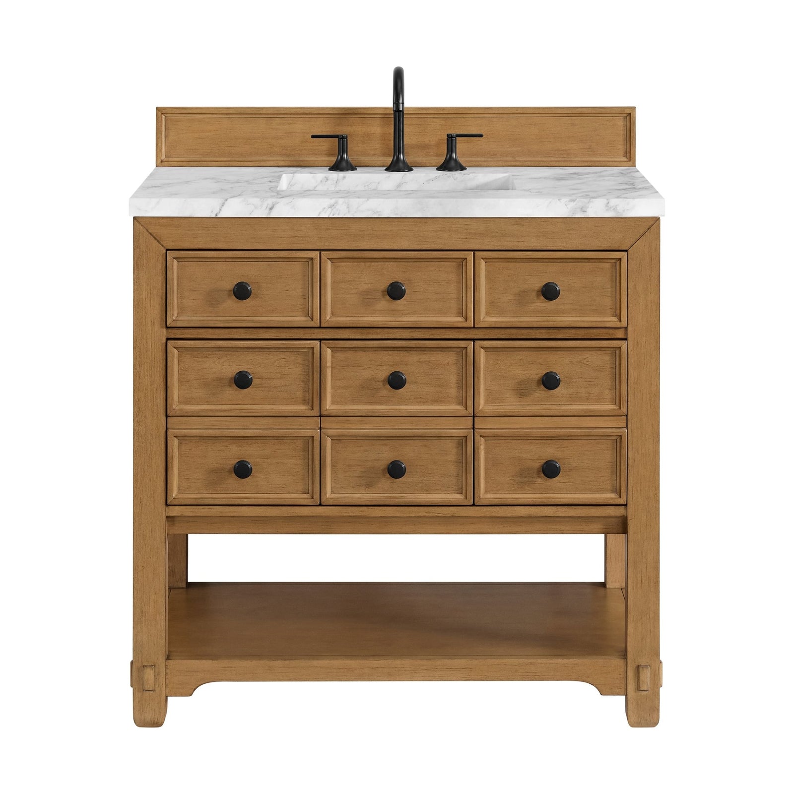Malibu 36" Single Vanity, Amber Birch w/ 3 CM Carrara Marble Top
