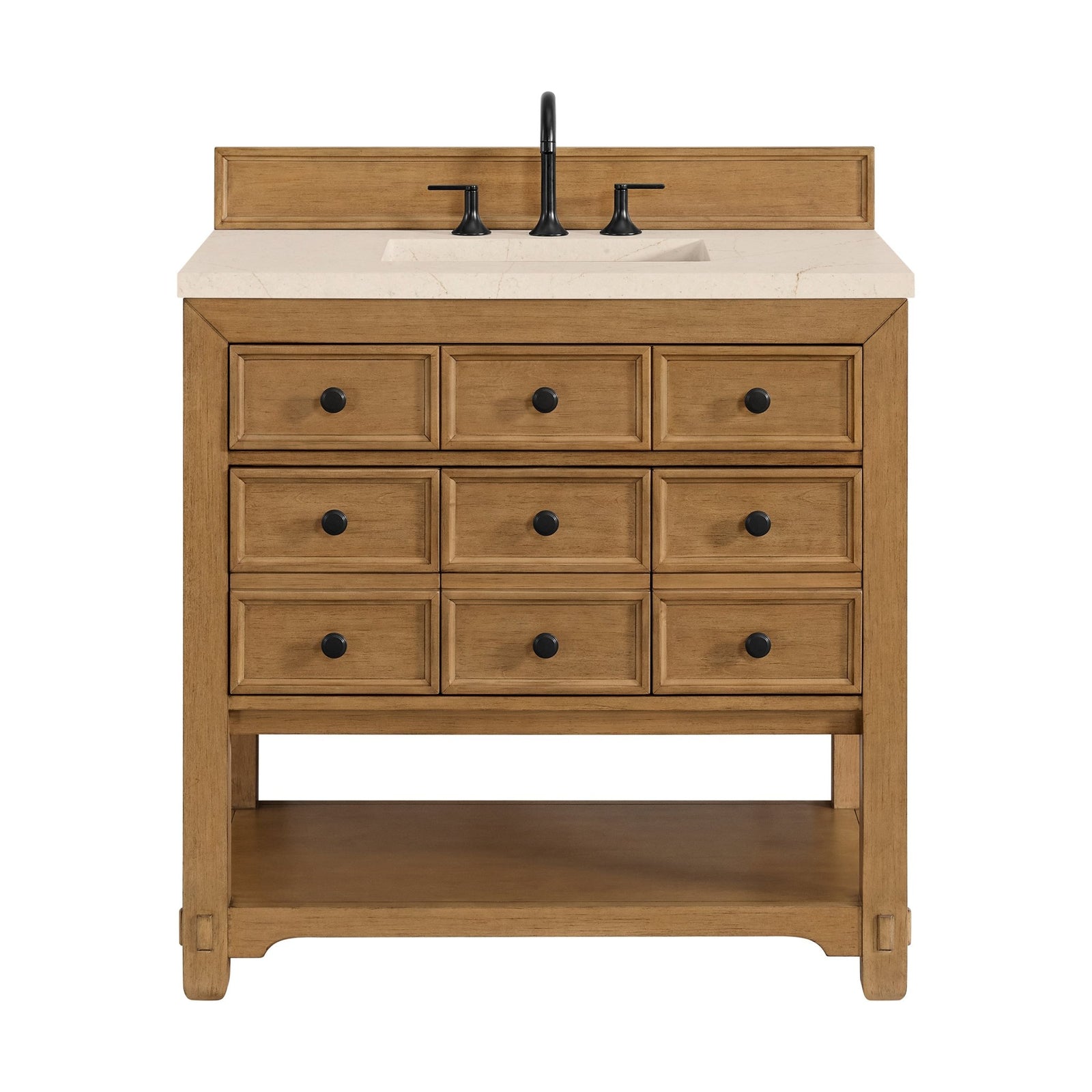 Malibu 36" Single Vanity, Amber Birch w/ 3 CM Eternal Jasmine Pearl Top