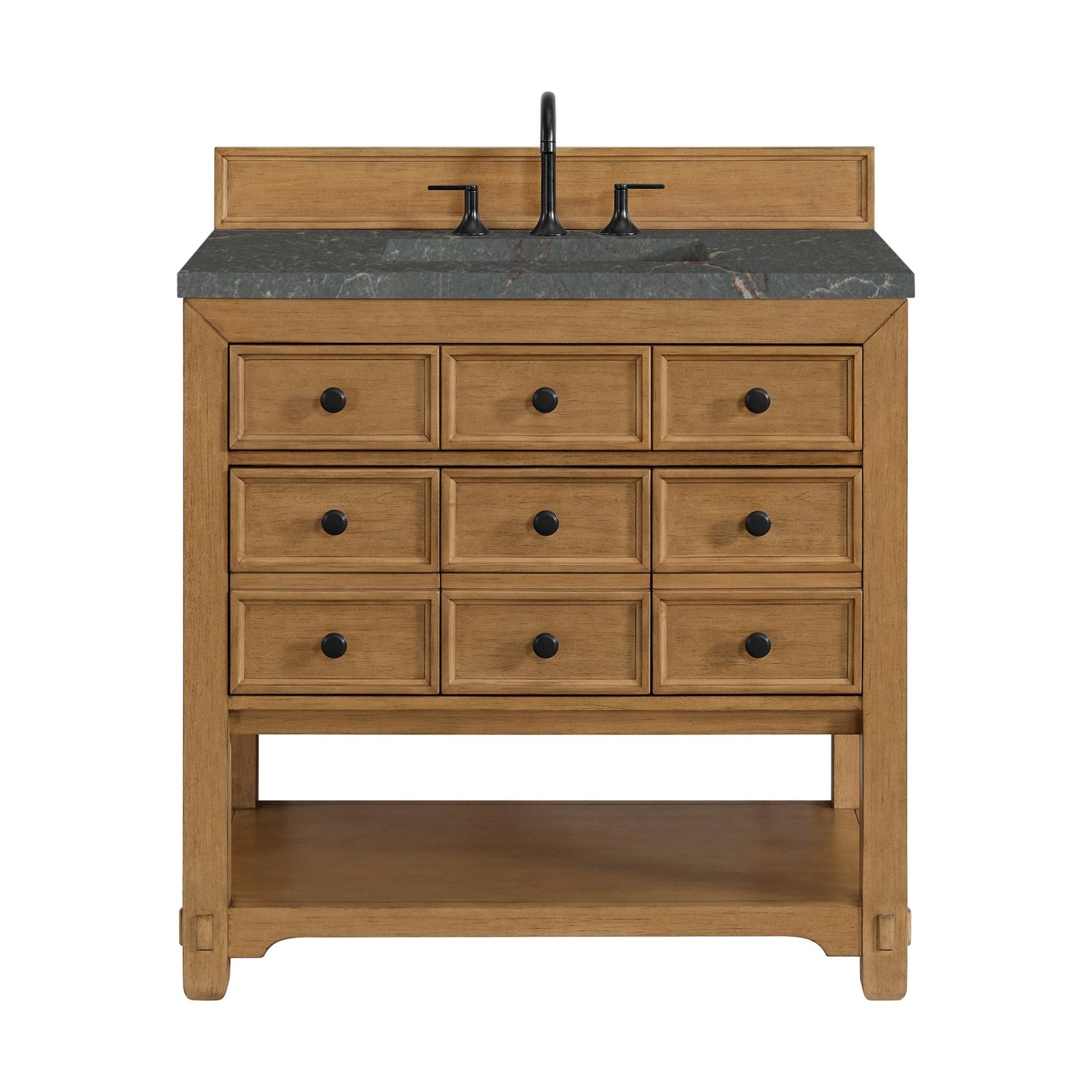 Malibu 36" Single Vanity, Amber Birch w/ 3 CM Charcoal Soapstone Top