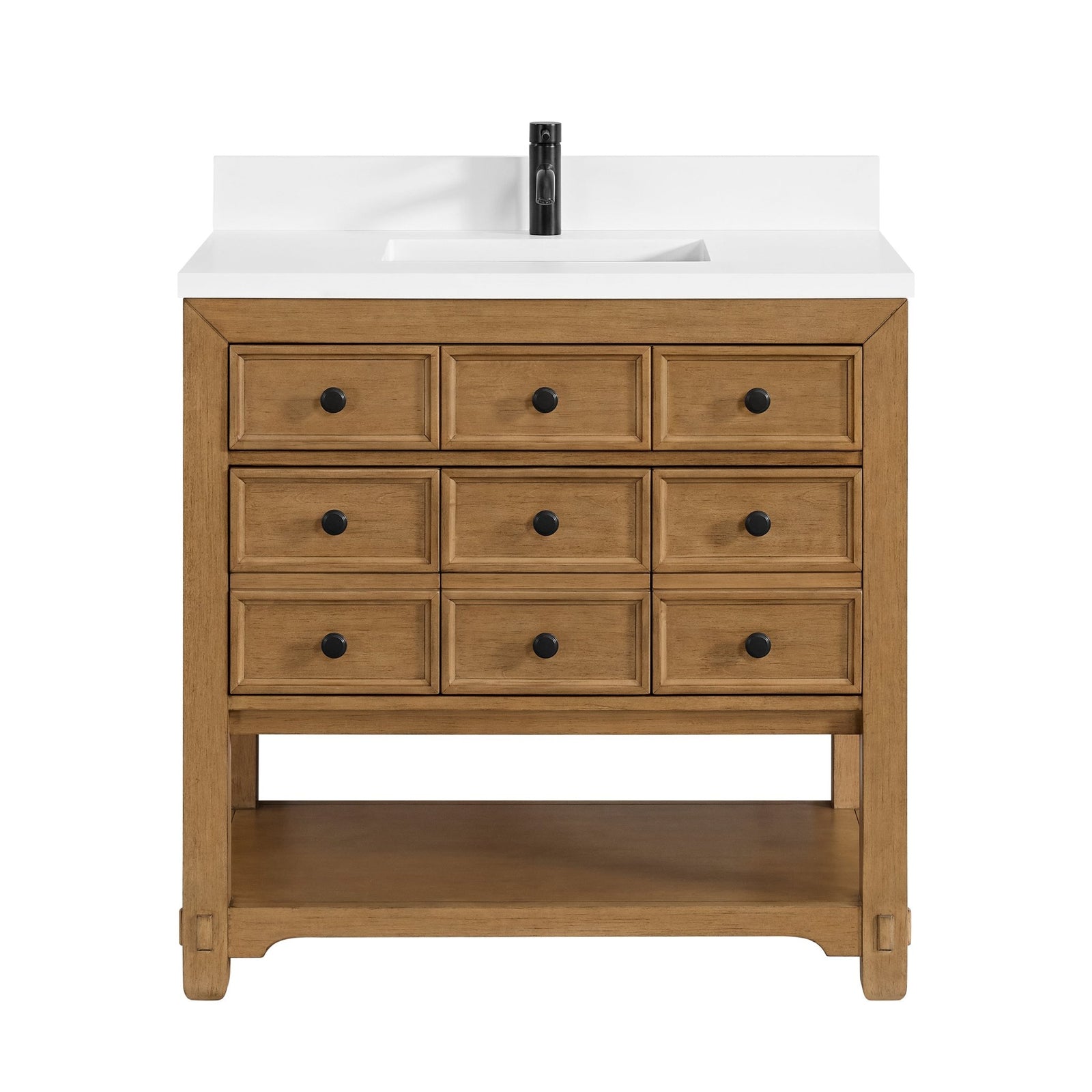 Malibu 36" Single Vanity, Amber Birch w/ 3 CM Arctic Fall Top