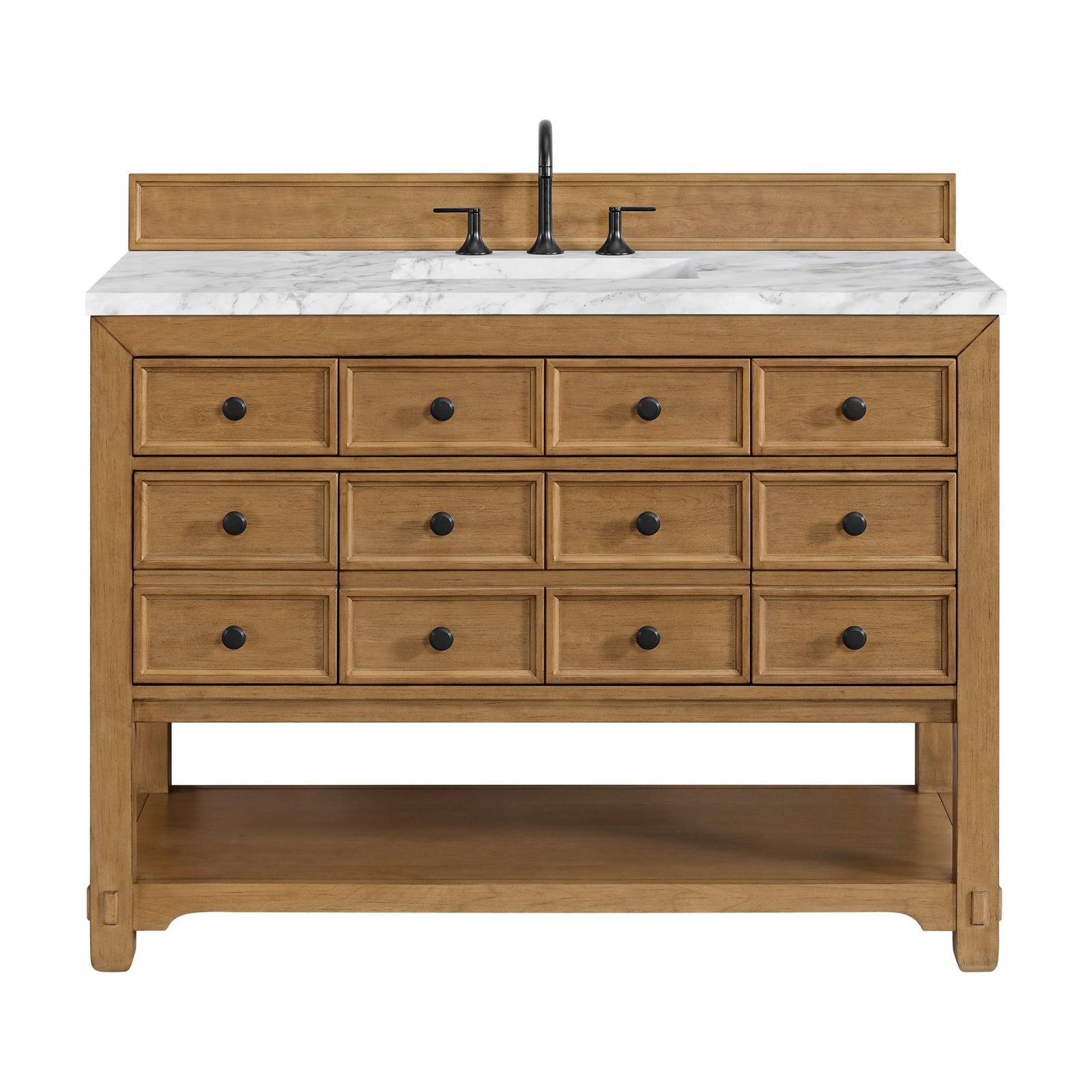 Malibu 48" Single Vanity, Amber Birch w/ 3 CM Carrara White Marble Top