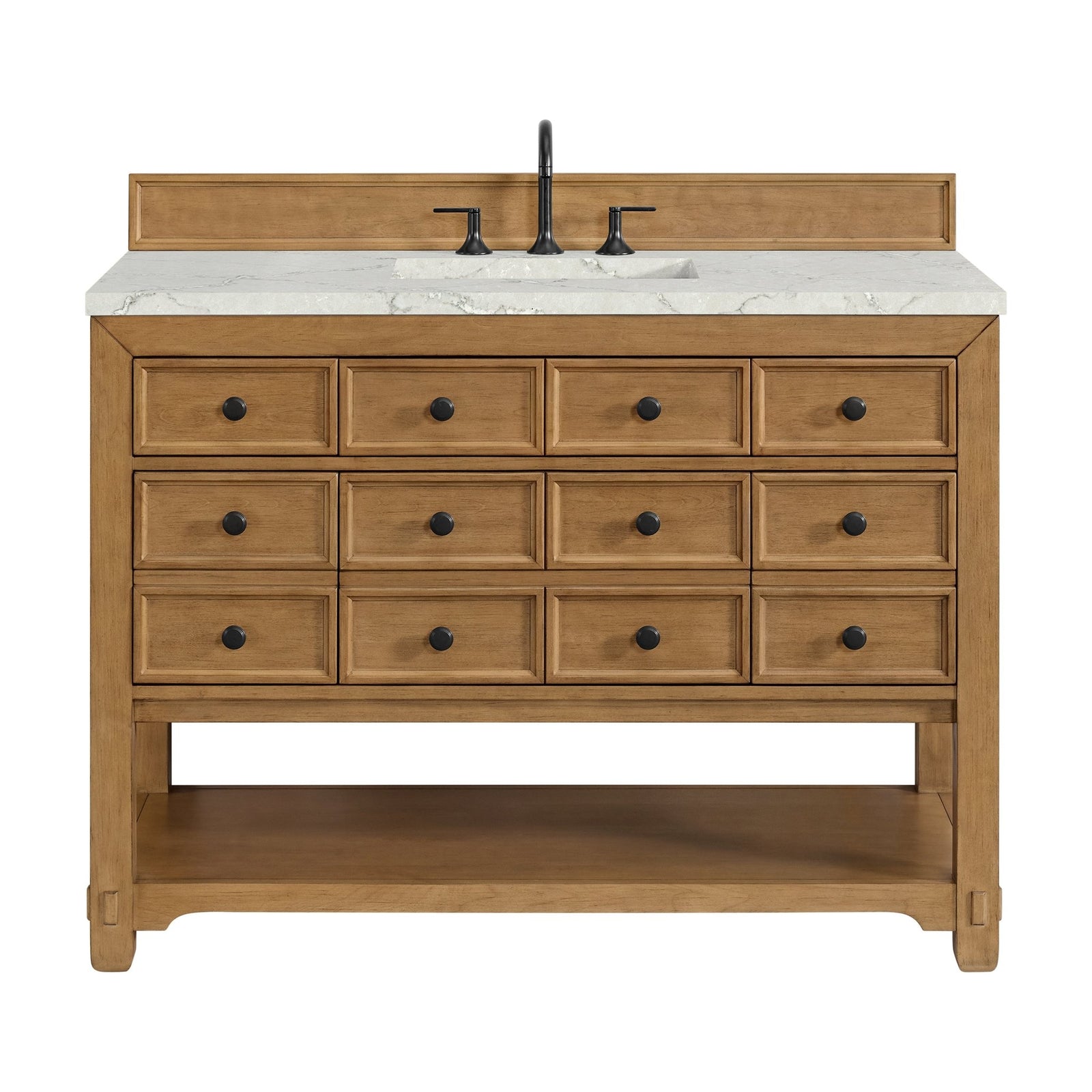 Malibu 48" Single Vanity, Amber Birch w/ 3 CM Eternal Jasmine Pearl Silestone Top