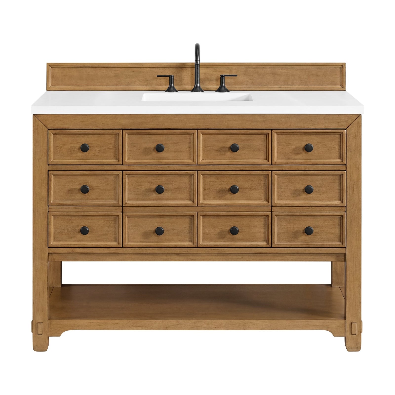 Lucian 48" Single Vanity, Pebble Oak w/ 3 CM White Zeus Silestone Widespread Top