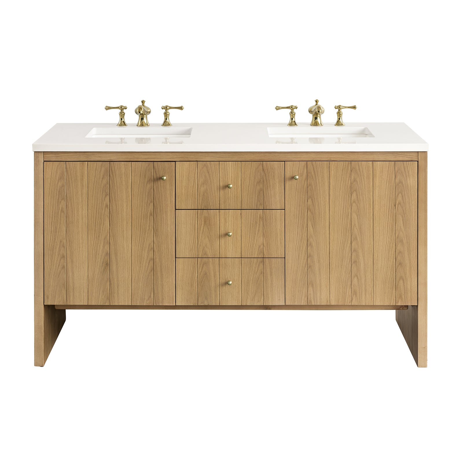 Hudson 60" Double Vanity, Light Natural Oak w/ 3 CM White Zeus Top