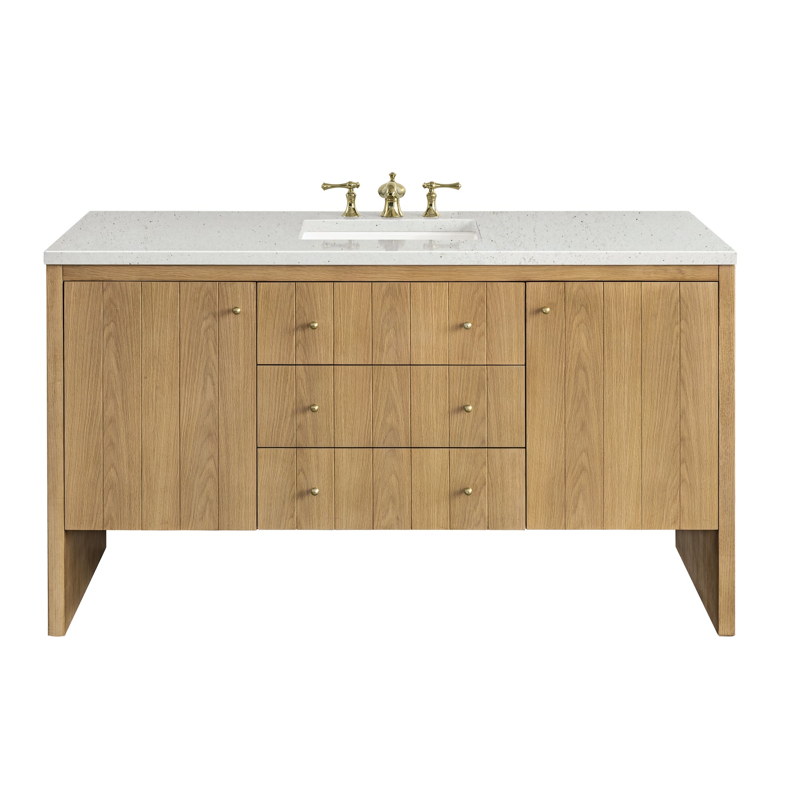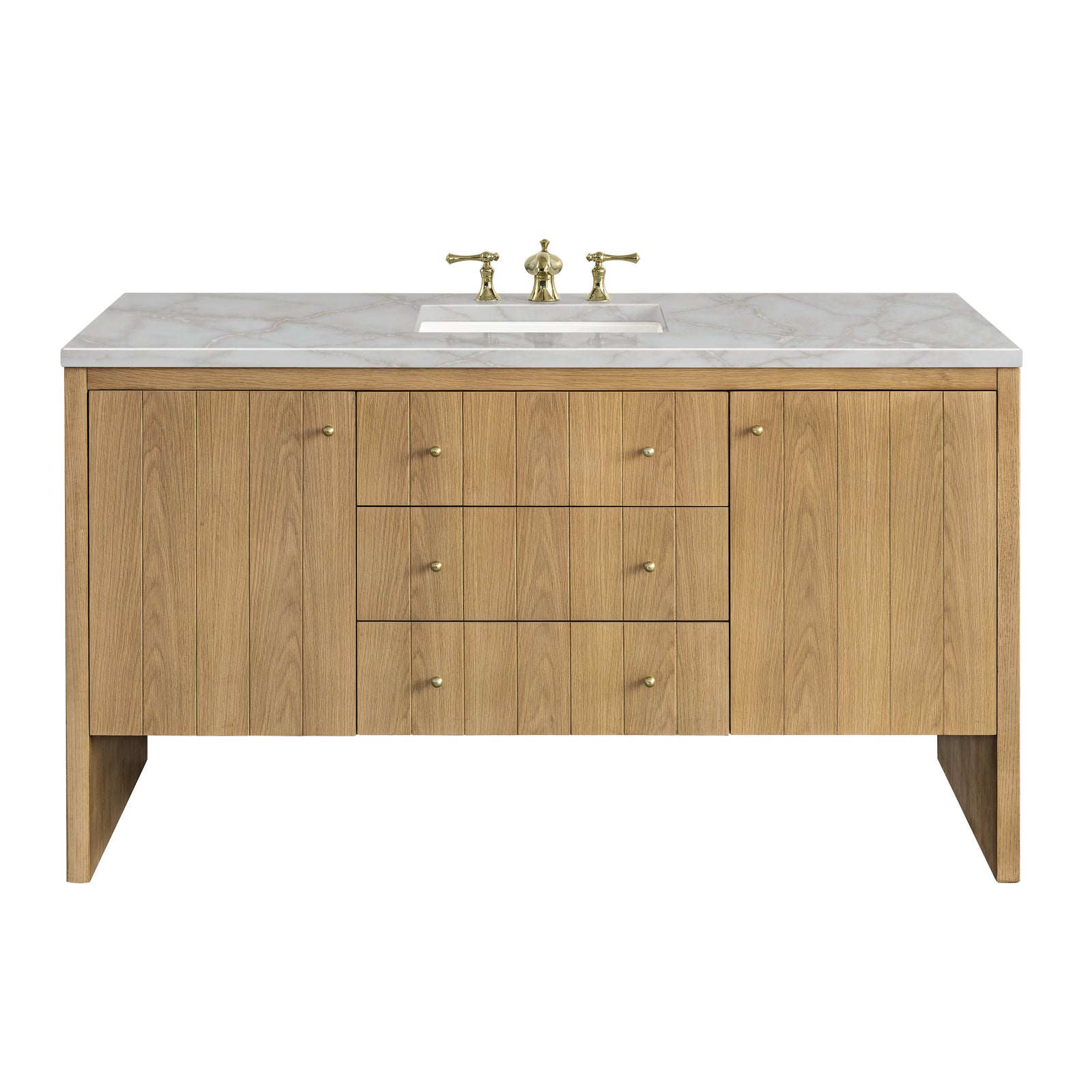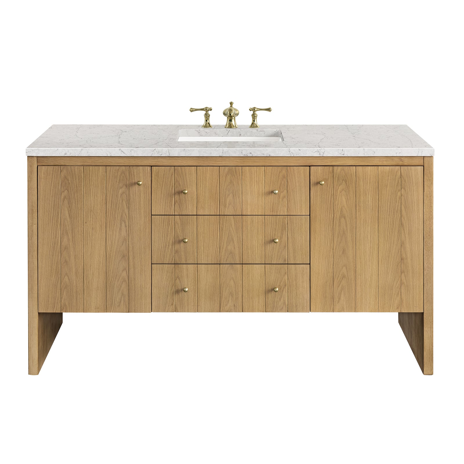 Hudson 60" Single Vanity, Light Natural Oak w/ 3 CM Eternal Jasmine Pearl Top