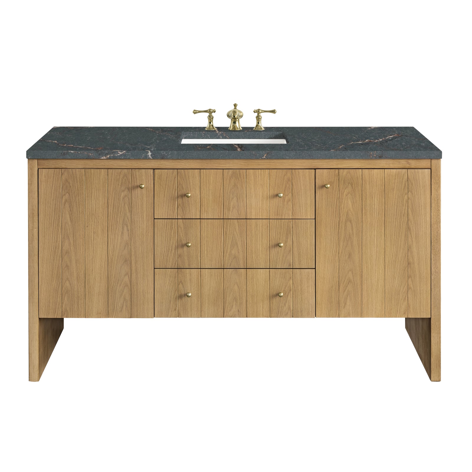 Hudson 60" Single Vanity, Light Natural Oak w/ 3 CM Charcoal Soapstone Top