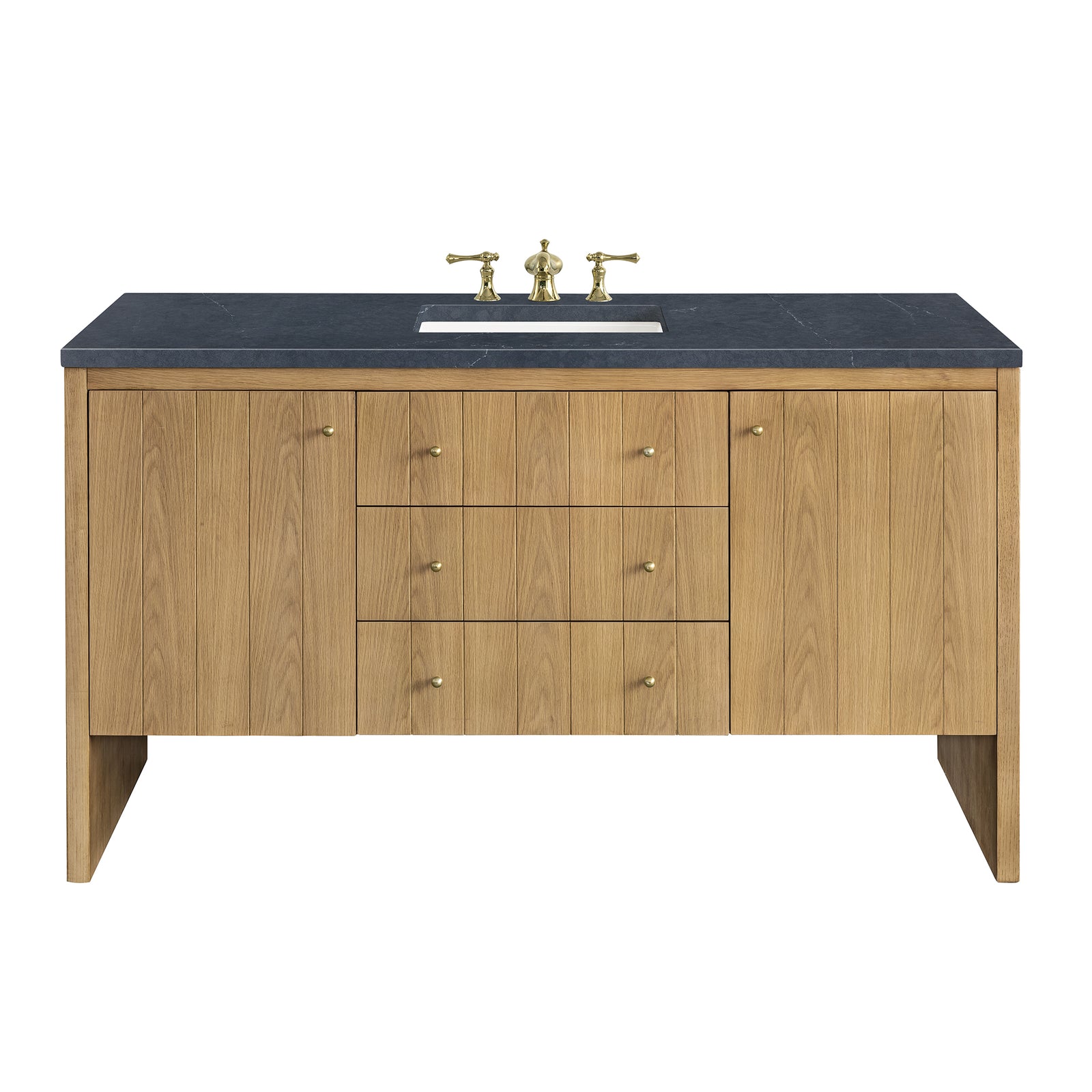 Hudson 60" Single Vanity, Light Natural Oak w/ 3 CM Parisien Bleu Top