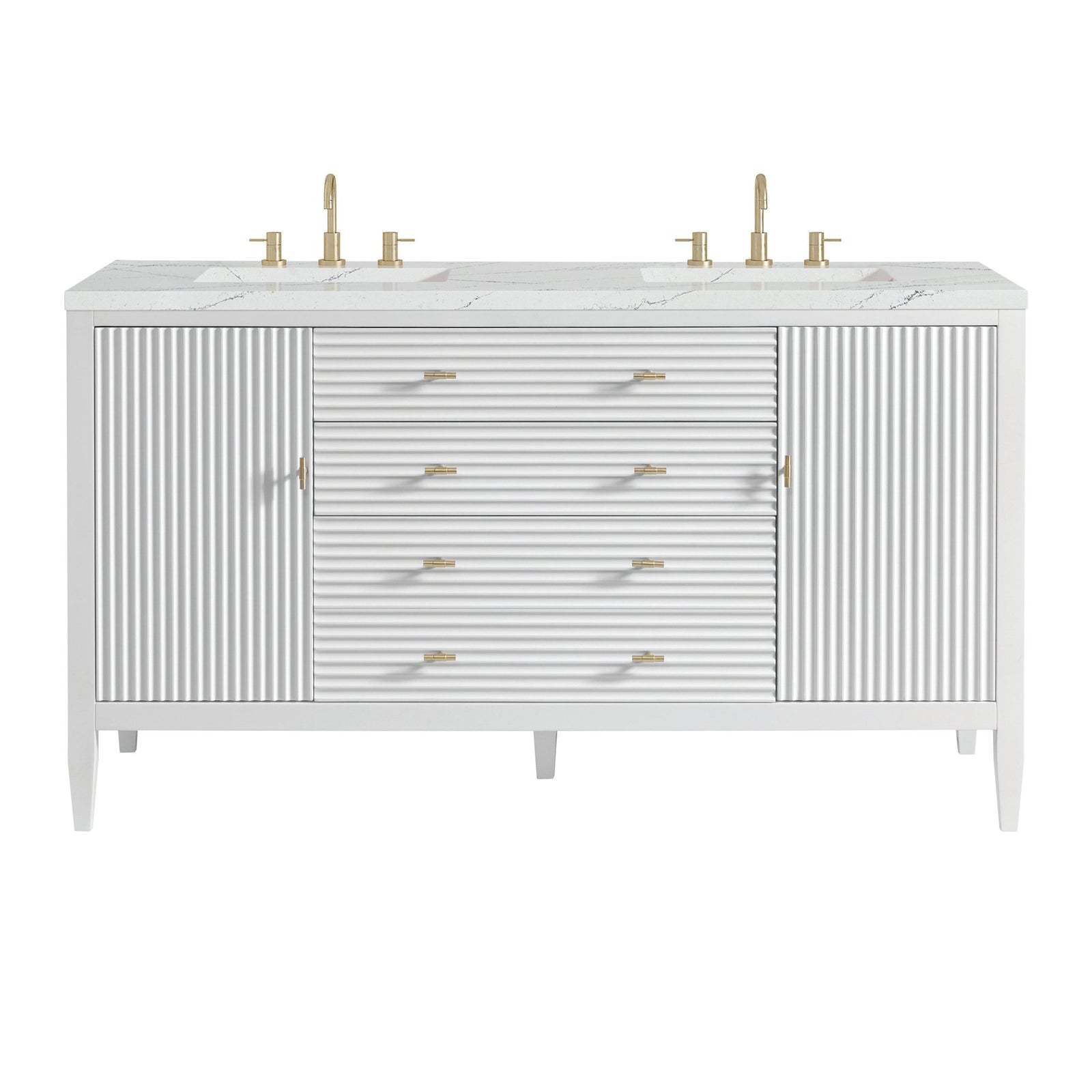 Myrrin 60" Double Vanity, Bright White w/ 3 CM Eternal Marfil Silestone Top
