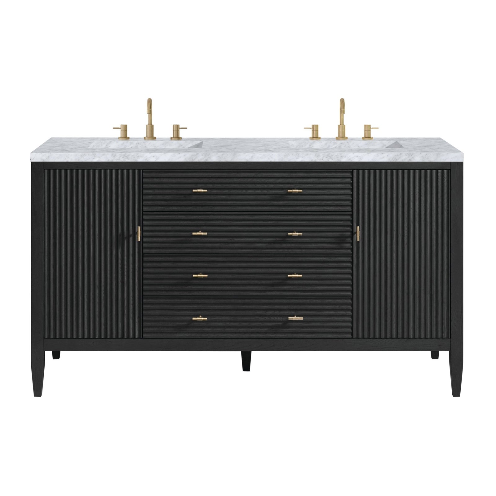 Myrrin 60" Double Vanity, Carbon Oak w/ 3 CM Carrara White Marble Top
