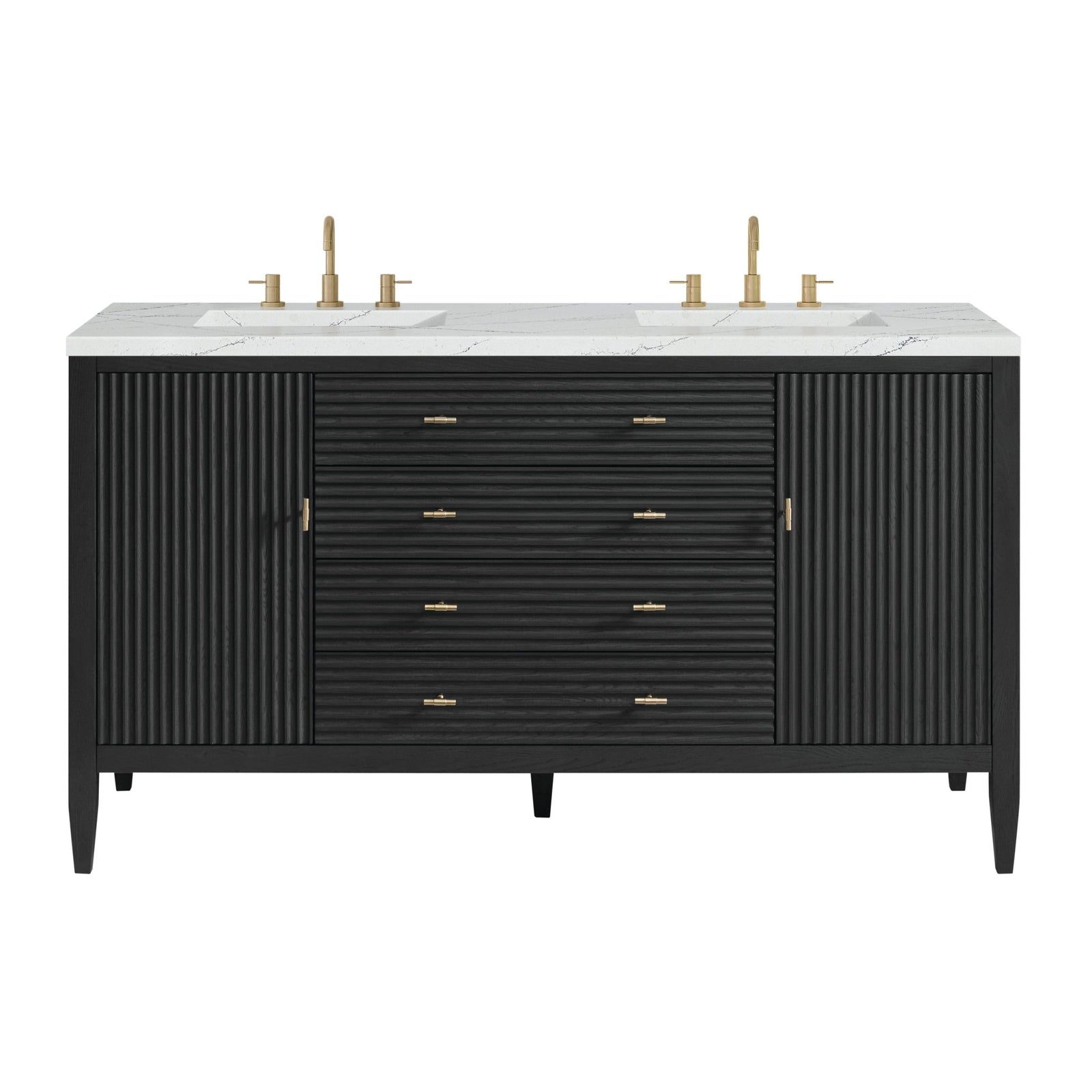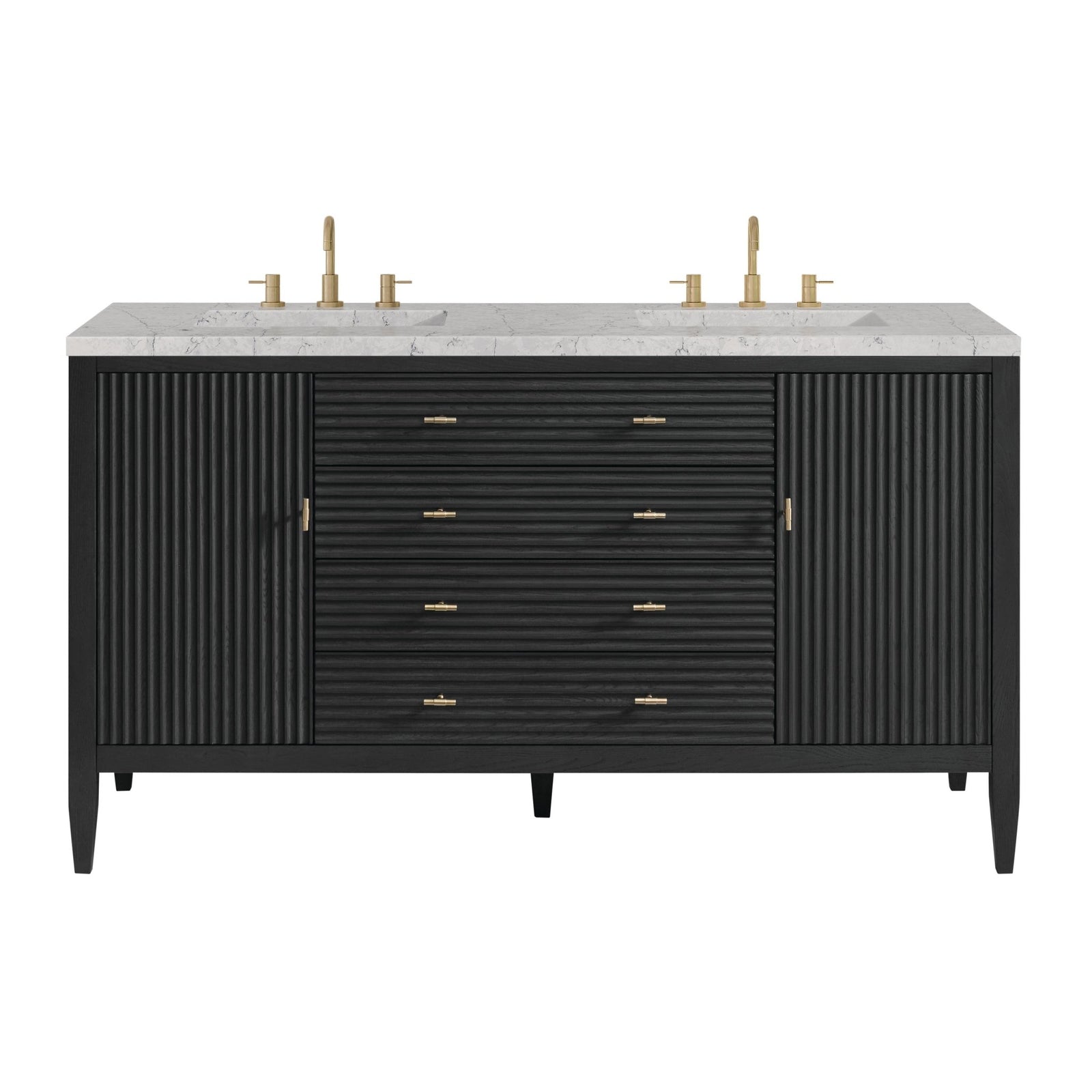 Myrrin 60" Double Vanity, Carbon Oak w/ 3 CM Eternal Jasmine Pearl Silestone Top