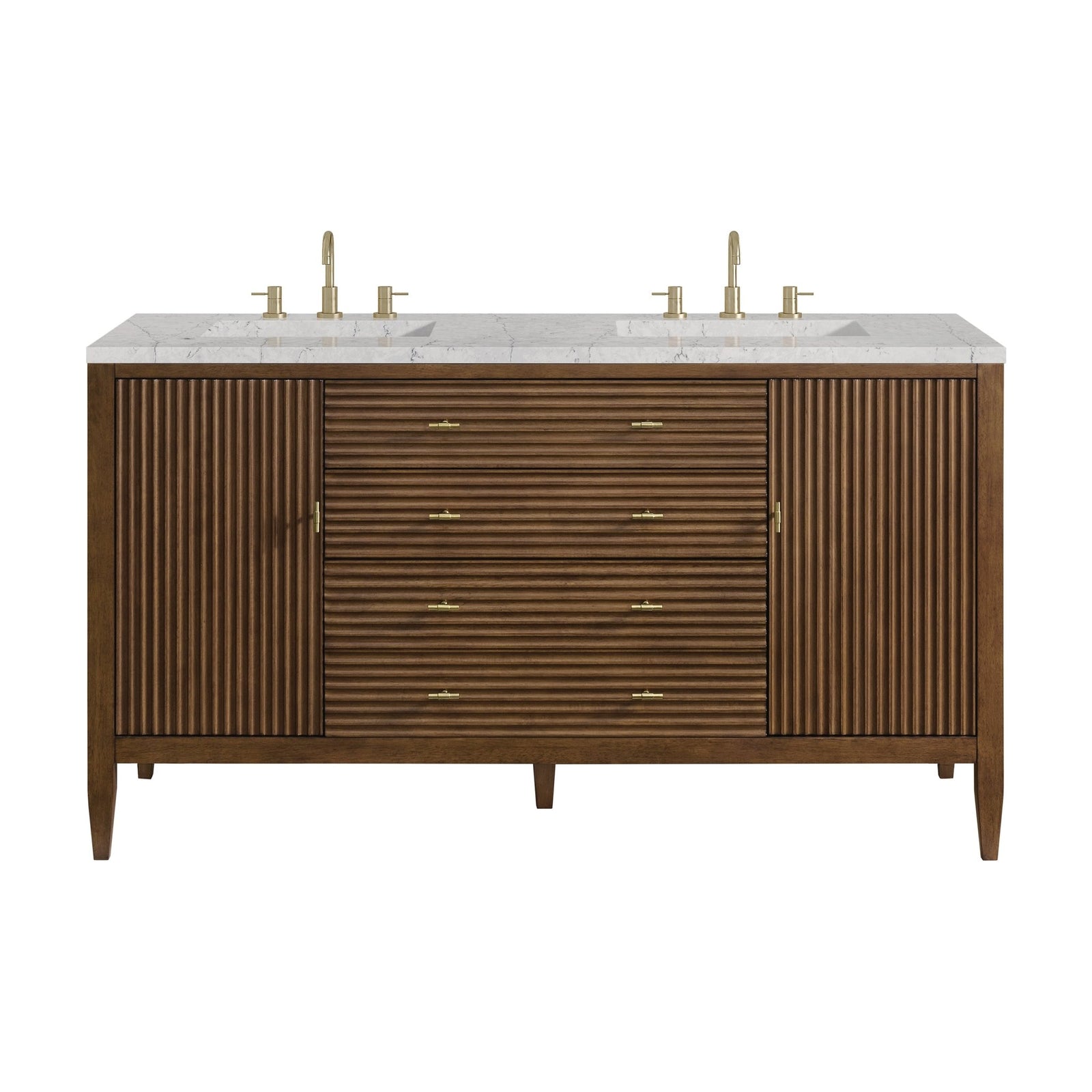 Myrrin 60" Double Vanity, Mid Century Walnut w/ 3 CM Eternal Jasmine Pearl Silestone Top