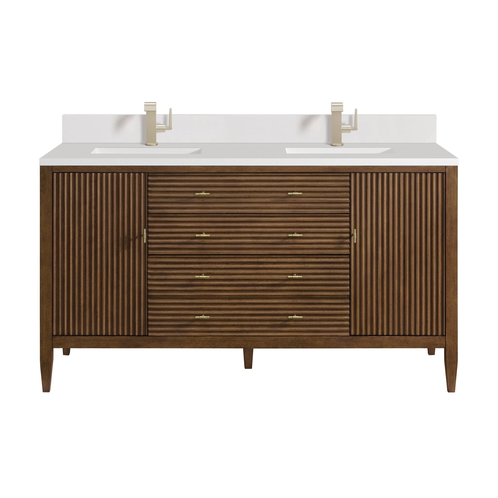 Myrrin 60" Double Vanity, Mid Century Walnut w/ 3 CM Arctic Fall Solid Surface Top