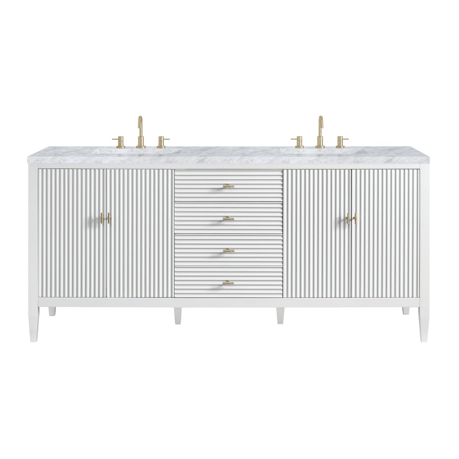 Myrrin 72" Double Vanity, Bright White w/ 3 CM Carrara White Marble Top