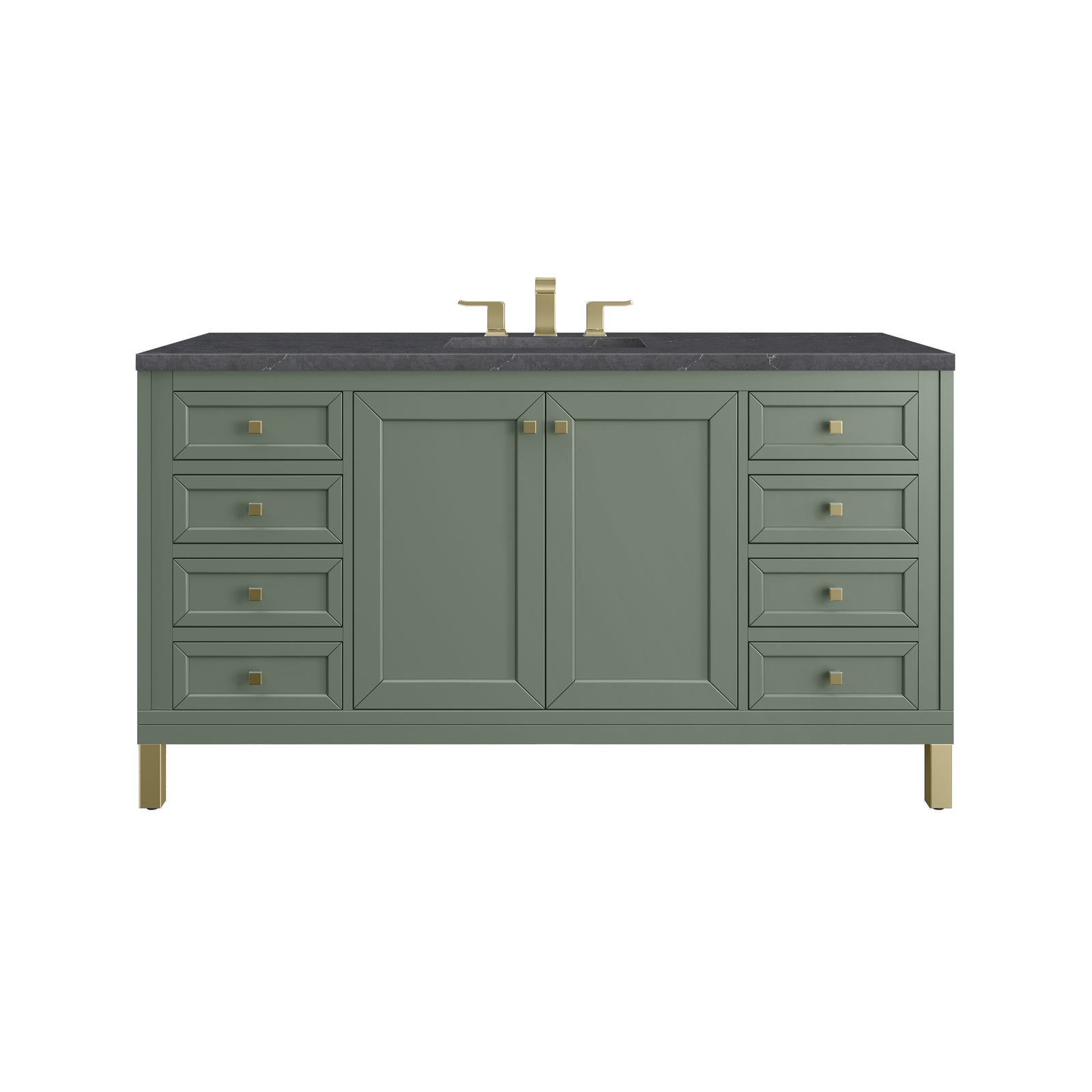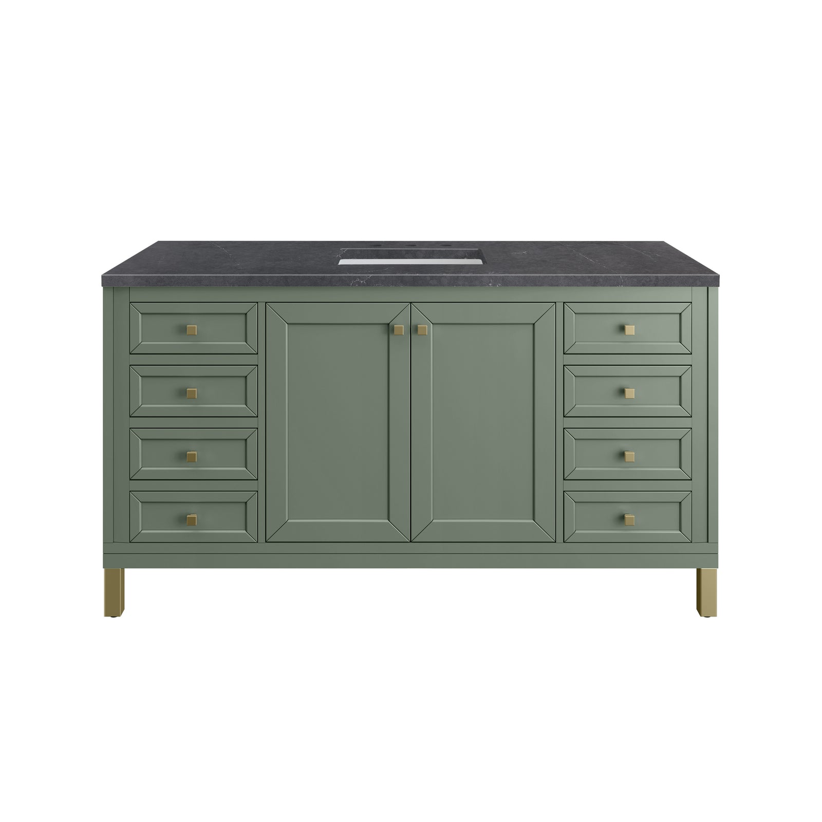Chicago 60" Single Vanity, Smokey Celadon, w/ 3 CM Charcoal Soapstone SilestoneĀ® Top