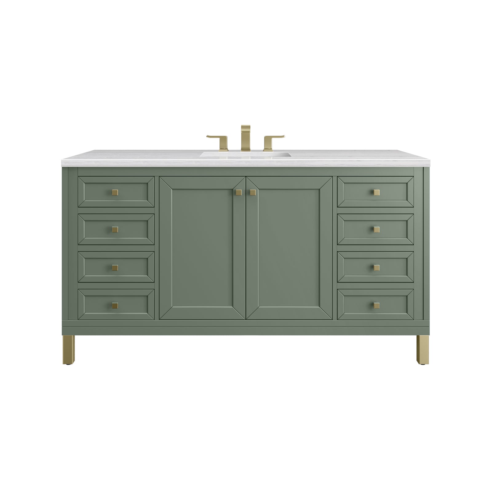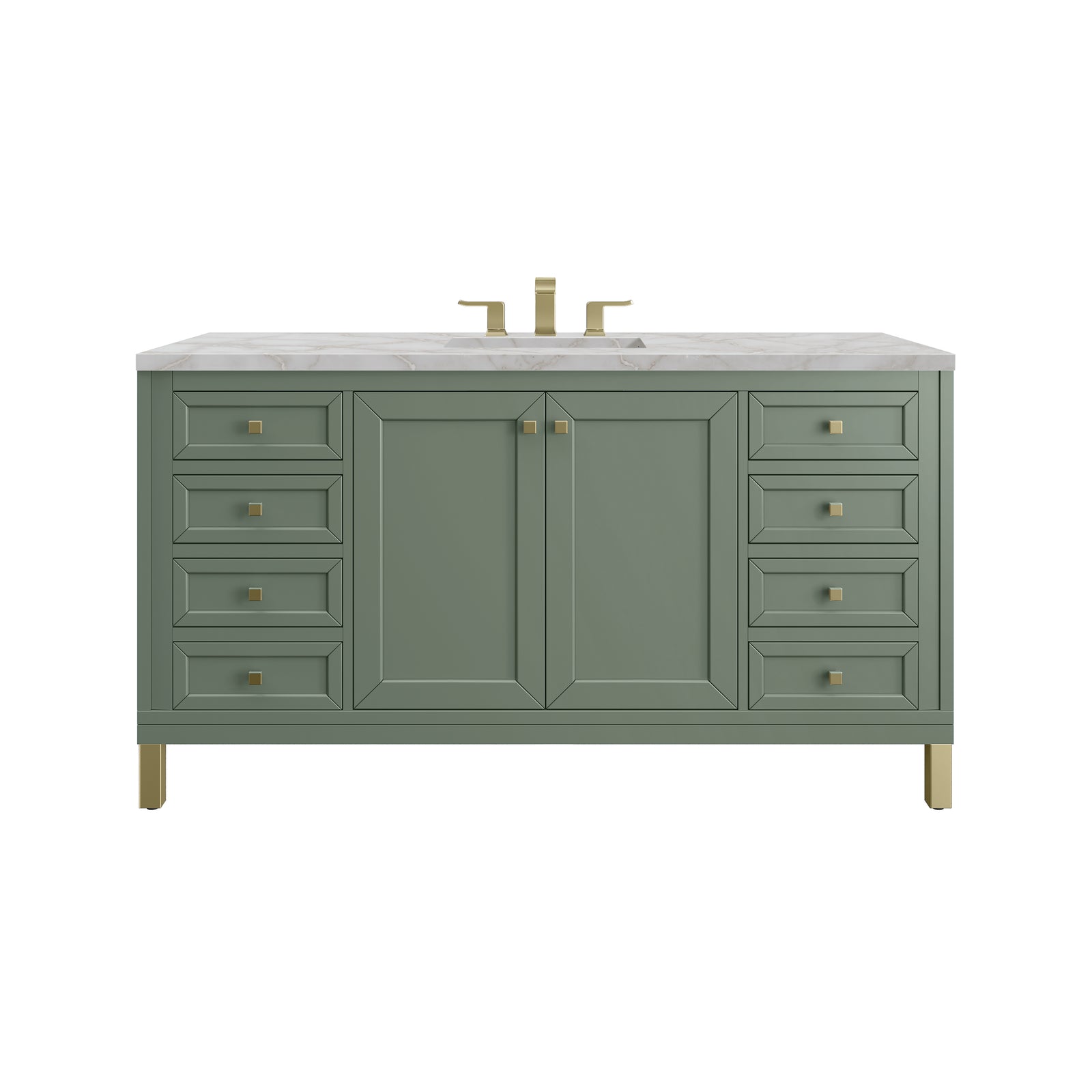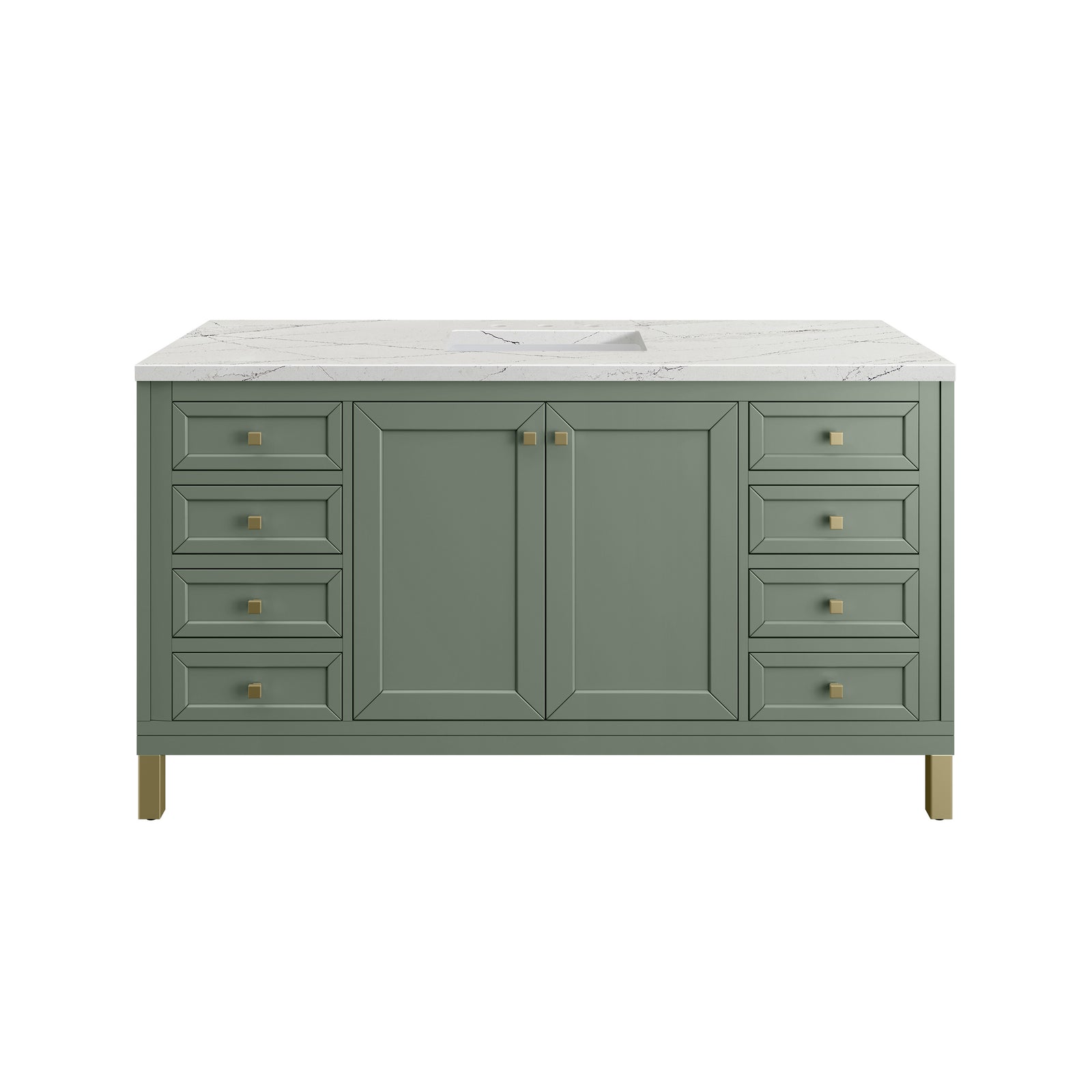 Chicago 60" Single Vanity, Smokey Celadon, w/ 3 CM Eternal Jasmine Pearl SilestoneĀ® Top