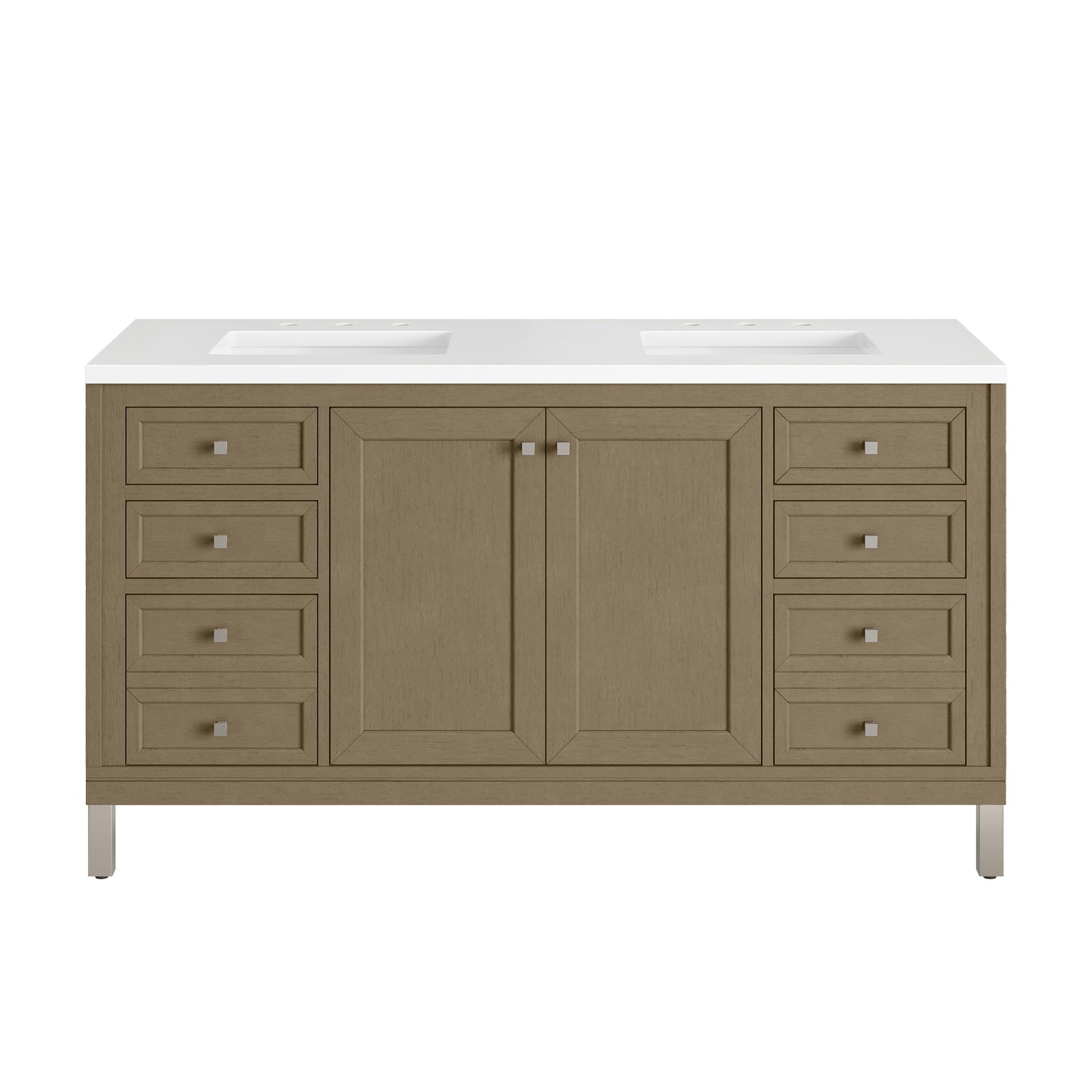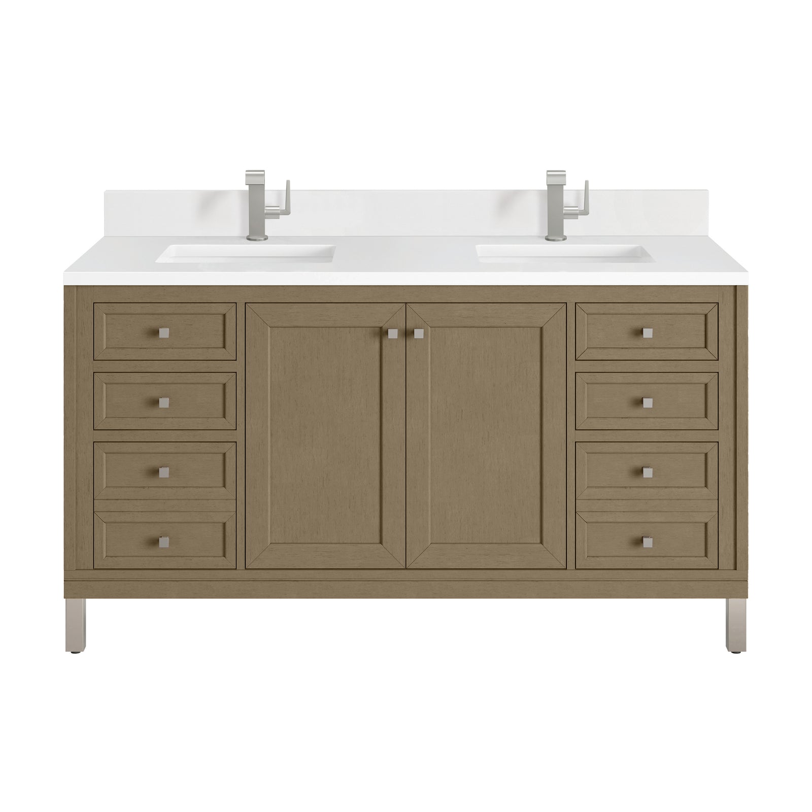 Chicago 60" Double Vanity, Walnut Whisper, w/ 3 CM White Zeus SilestoneĀ® Top