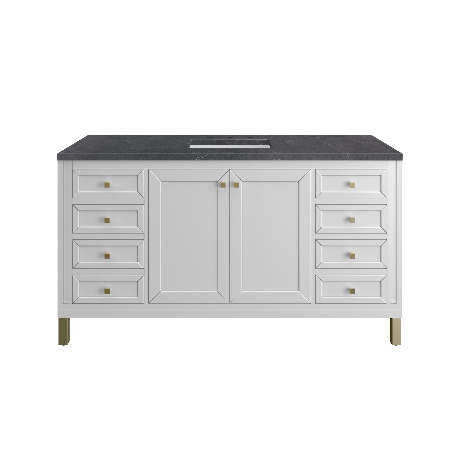 Chicago 60" Single Vanity, Glossy White, w/ 3 CM Charcoal Soapstone SilestoneĀ® Top