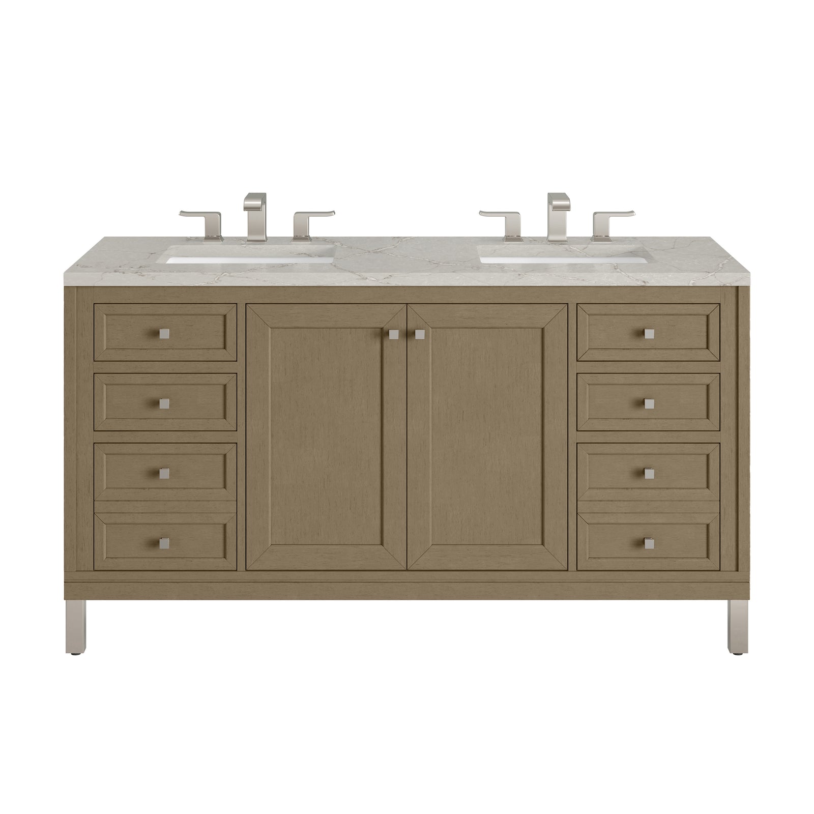 Chicago 60" Double Vanity, Walnut Whisper, w/ 3 CM Eternal Jasmine Pearl SilestoneĀ® Top